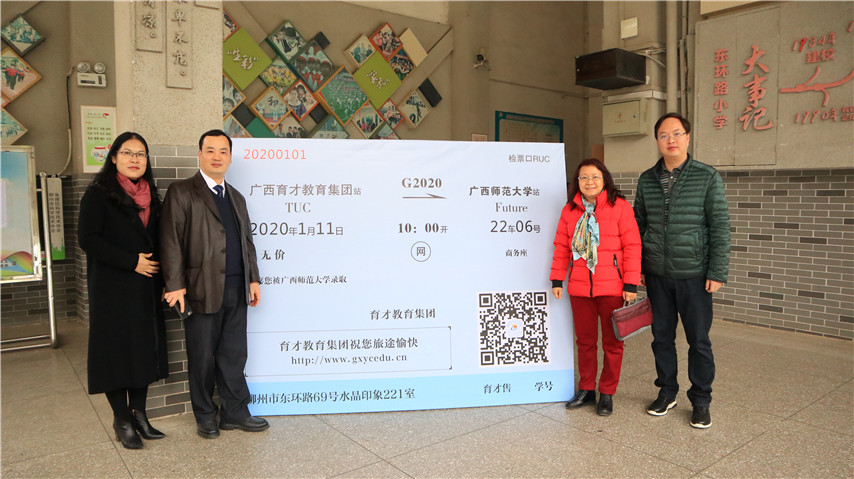 ▲廣西師范大學(xué)繼續(xù)教育學(xué)院院長劉玉紅教授(右二)、學(xué)歷部主任蘇華(右一)、集團總校校長梁國坤(左二)、聯(lián)合黨委紀檢委員、副校長李彩梅(左一)合影