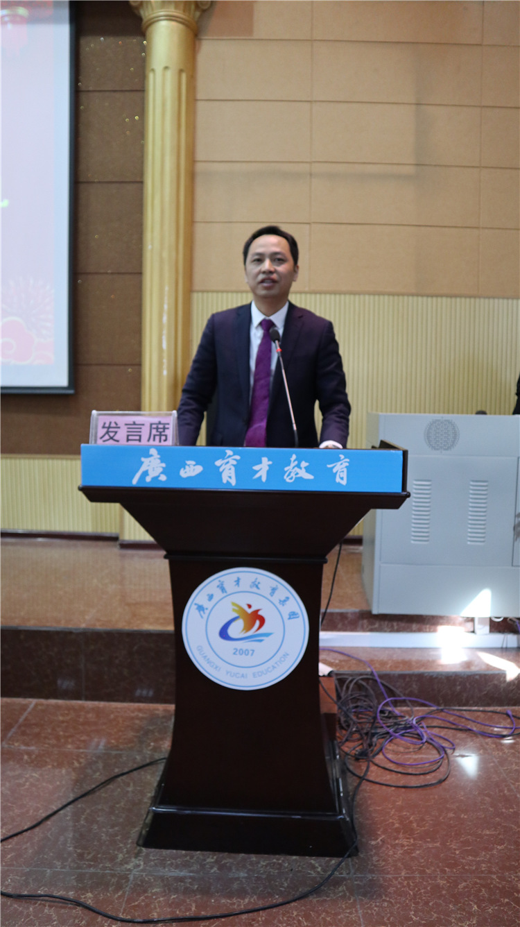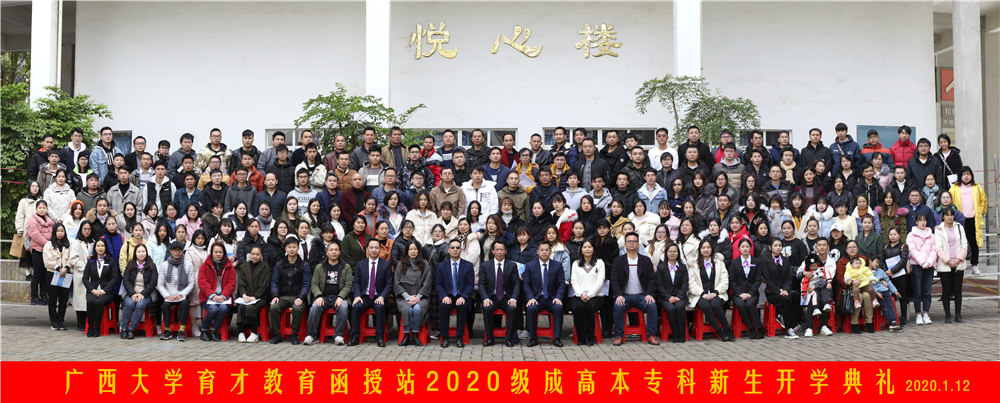 1月12日上午,廣西大學(xué)育才教育函授站2020級成高新生開學(xué)典禮在柳州本部順利召開,廣西大學(xué)繼續(xù)教育學(xué)院院長蘇兆成,副院長陳海,招生工作管理科科長梁海萍,院辦副主任陳義群,集團聯(lián)合黨委書記、董事長、函授站站長蔣華,聯(lián)合黨委副書記、副校長、函授站副站長王志以及來自柳州各行各業(yè)的170余名新生代表參加了開學(xué)典禮,儀式由副站長王志主持。