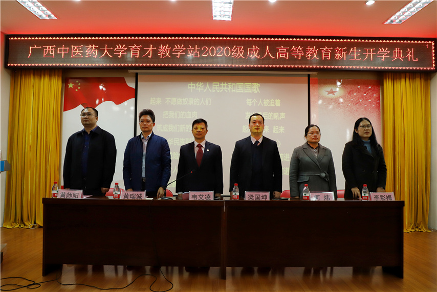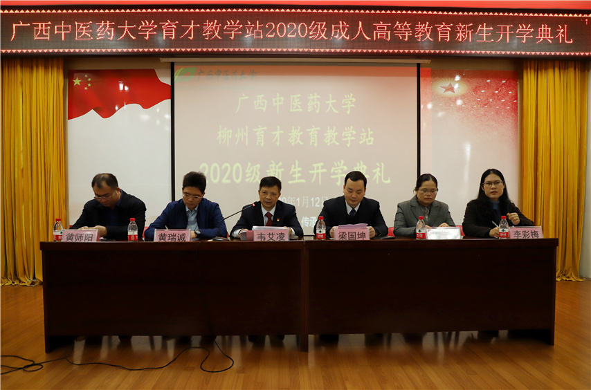 1月12日上午,廣西中醫(yī)藥大學育才教育教學站2020級成人高等教育新生開學典禮在柳州中醫(yī)院隆重舉行。廣西中醫(yī)藥大學成人繼續(xù)教育學院院長、博士生導師、二級教授韋艾凌,副院長黃瑞誠,院辦主任何煒,招生與學生管理科科長黃師陽,集團總校校長梁國坤,集團聯(lián)合黨委委員、副校長、教學站副站長李彩梅以及來自柳州醫(yī)藥系統(tǒng)新生代表參加了開學典禮。典禮由教學站學工部主任李麗瓊主持。