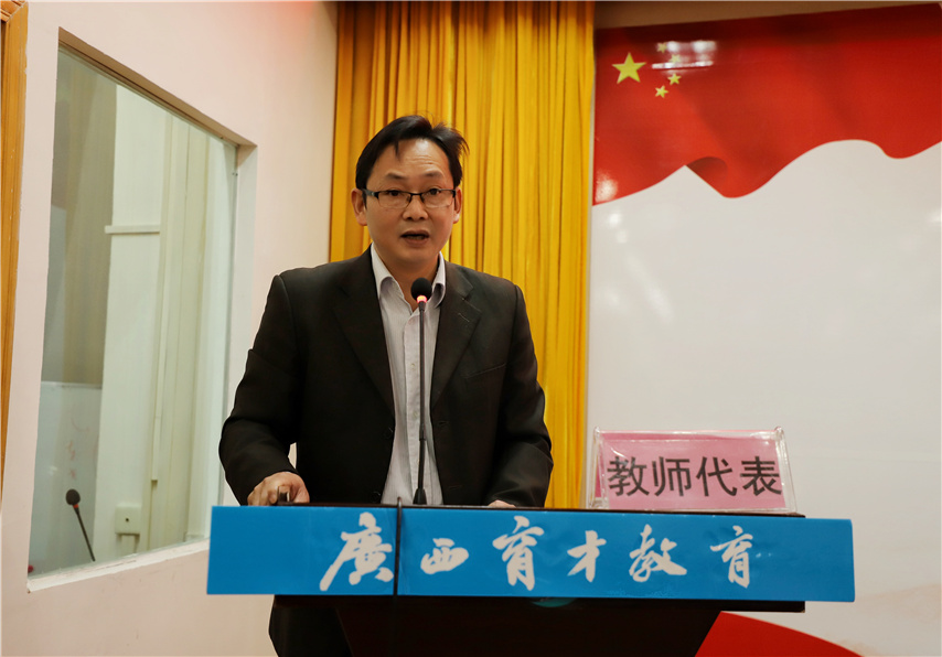 教師代表陸桂喜發(fā)言,表示將認真按照學校的教學制度和教學計劃進行教學管理,努力做好教學工作,關(guān)心愛護學生。希望同學們轉(zhuǎn)變學習觀念,開啟自主式的主動型學習模式,按時按質(zhì)完成學習任務(wù);珍惜難得的學習機會,提高學習能力,要正確處理好學習和工作的關(guān)系,吃苦耐勞;珍惜同學情誼,相互幫助,共同成長,順利地完成學習任務(wù)。