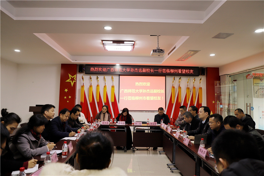 1月15日上午,廣西師范大學(xué)校黨委常委、副校長(zhǎng)、教育部長(zhǎng)江學(xué)者、國(guó)家督學(xué)孫杰遠(yuǎn)教授帶隊(duì)一行蒞臨集團(tuán)柳州本部指導(dǎo),并在集團(tuán)柳州本部召開部分校友座談會(huì),看望柳州校友。校友工作辦公室、教育發(fā)展基金會(huì)管理辦公室主任何小明等領(lǐng)導(dǎo)、老師隨同,集團(tuán)聯(lián)合黨委書記、董事長(zhǎng)蔣華、集團(tuán)總校校長(zhǎng)梁國(guó)坤陪同。