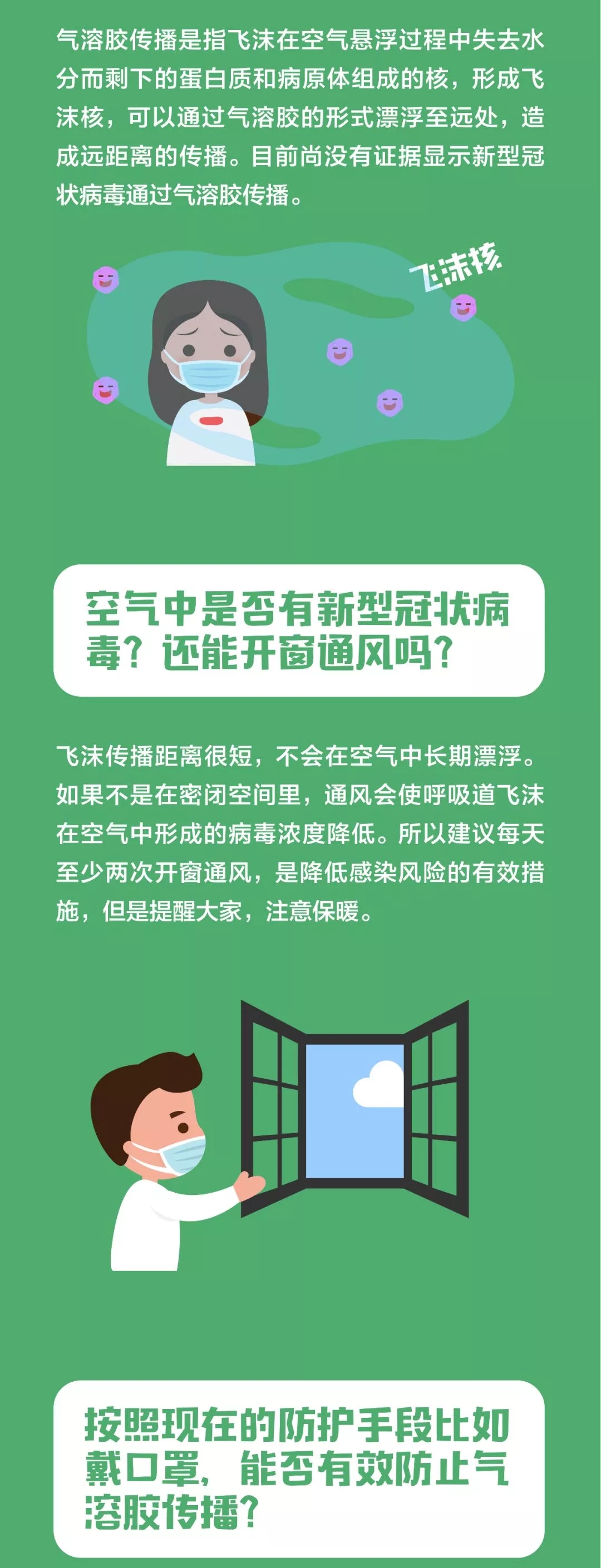 新型冠狀病毒會不會通過氣溶膠傳播?開窗通風有沒有感染風險?出門要不要帶手套?乘坐公共交通工具有哪些注意事項……