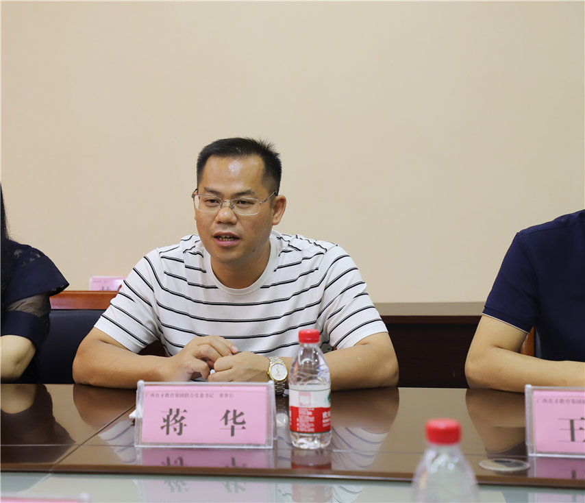5月21日,梧州學(xué)院繼續(xù)教育學(xué)院院長(zhǎng)梁復(fù)明、副院長(zhǎng)吳剛、招生培訓(xùn)部主任蔡菲菲等一行5人蒞臨集團(tuán)柳州本部考察指導(dǎo),集團(tuán)聯(lián)合黨委書記、董事長(zhǎng)蔣華、黨委副書記、副總經(jīng)理、副校長(zhǎng)王志等黨政領(lǐng)導(dǎo)班子陪同。
