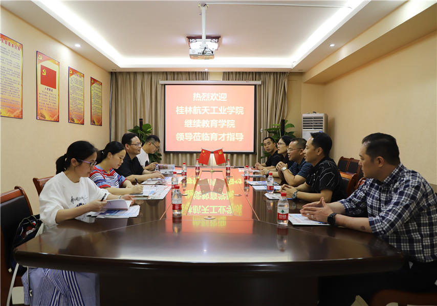 5月27日,桂林航天工業(yè)學院繼續(xù)教育學院彭源波院長一行4人蒞臨集團柳州本部考察指導,集團聯(lián)合黨委書記、董事長蔣華、黨委副書記、副總經(jīng)理、副校長王志等黨政領導班子陪同。
