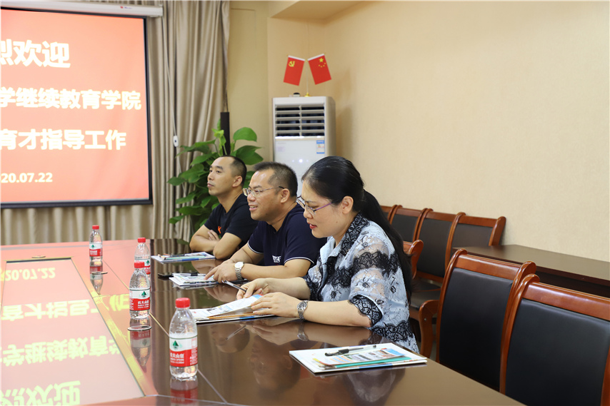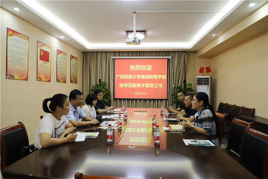 7月22日,廣西民族大學(xué)繼續(xù)教育學(xué)院院長(zhǎng)覃志和、副院長(zhǎng)唐曉華一行4人蒞臨集團(tuán)柳州本部指導(dǎo)2020年成高招生工作。