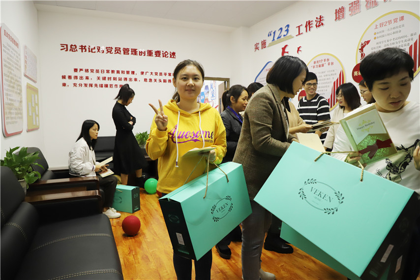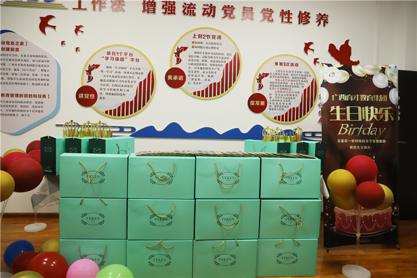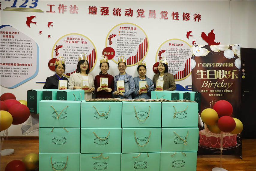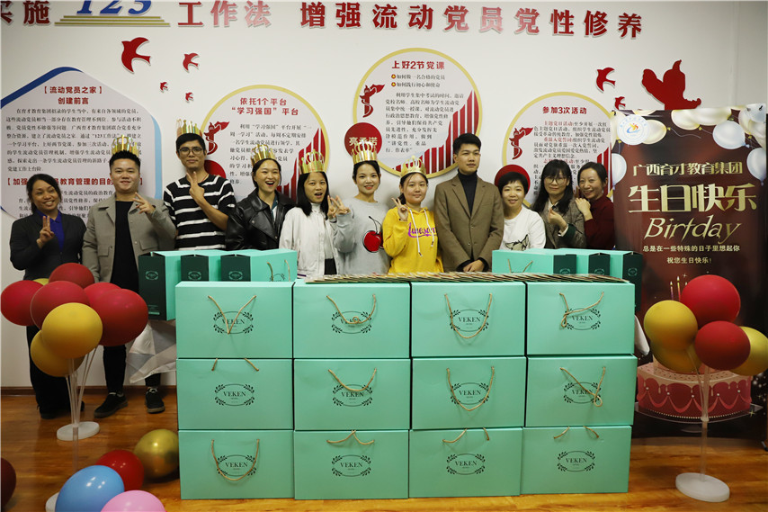 集團(tuán)工會(huì)為壽星們精心準(zhǔn)備了精美生日禮物,10月下旬,大家?guī)е鹈郏瑤е⑿?,帶著祝福,齊聚集團(tuán)本部柳州水晶印象206室共同慶生,集團(tuán)30余名教職工參加。