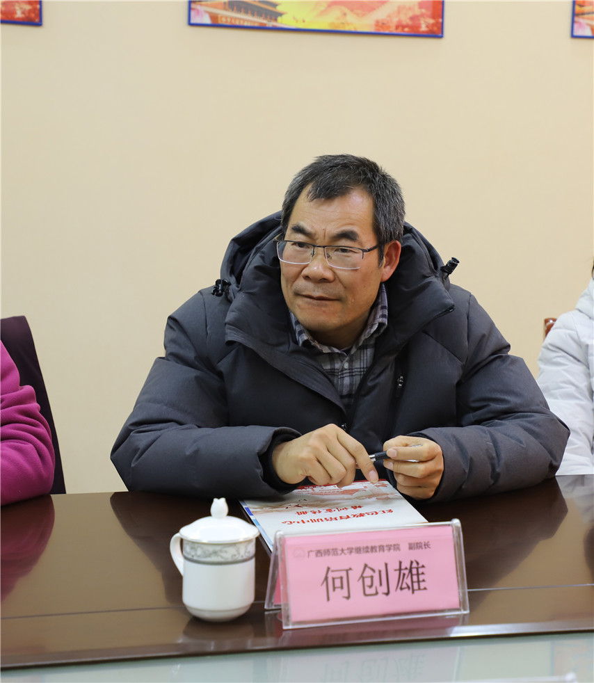 ▲廣西師范大學繼續(xù)教育學院副院長何創(chuàng)雄座談交流