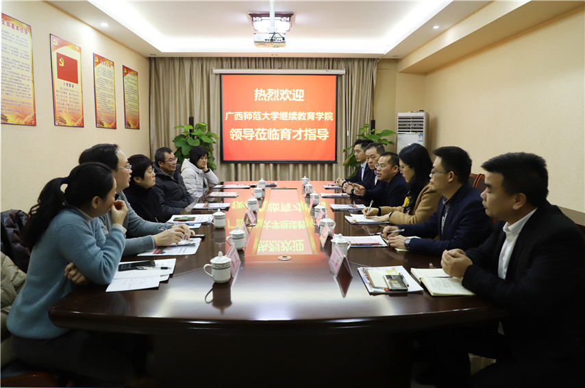 近日,廣西師范大學繼續(xù)教育學院院長、博士生導師劉玉紅教授、副院長何創(chuàng)雄、李敏、學歷部主任蘇華一行6人蒞臨集團柳州本部檢查指導工作,集團黨委書記、董事長蔣華、黨委委員、副校長李彩梅、黨委委員、培訓學院院長趙彬參加了座談會。