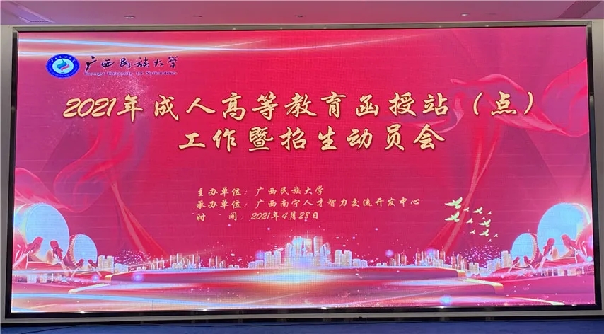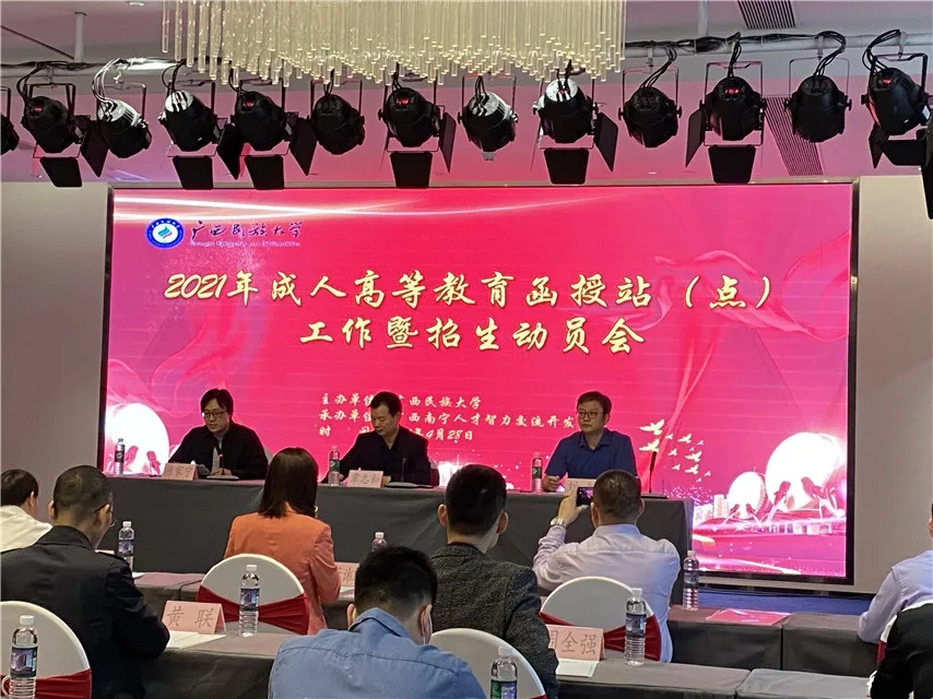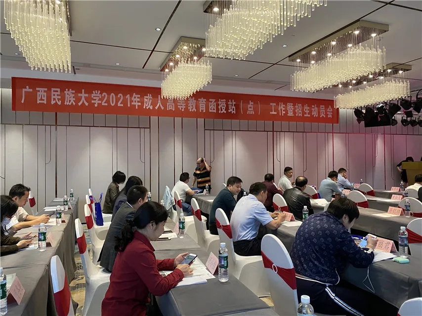 4月28日,廣西民族大學(xué)2021年成人高等教育函授站(點(diǎn))工作暨招生動(dòng)員會(huì)在百色順利召開,繼續(xù)教育學(xué)院院長覃志和以及各函授站(點(diǎn))負(fù)責(zé)人共50余人參加了會(huì)議。我函授站副站長王志參加了會(huì)議。
