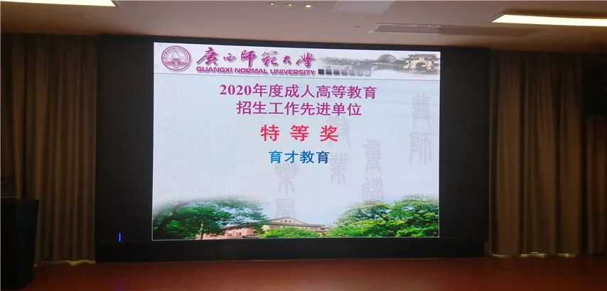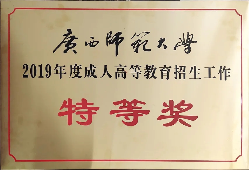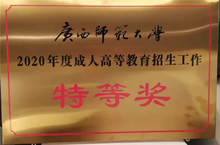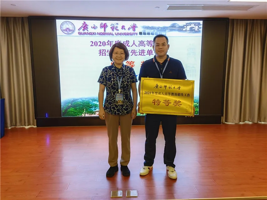會議表彰了2020年度成人高等教育招生工作先進單位,因工作出色,我函授站榮獲廣西師范大學2020年度成人高等教育招生工作“特等獎”,這是集團與廣西師范大學合作辦學以來,第10次榮獲廣西師范大學成人高等教育招生工作“特等獎”。
