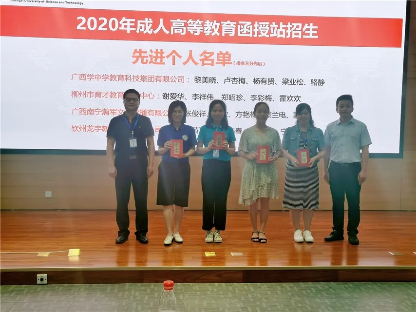 因工作出色,我函授站榮獲廣西科技大學(xué)2020年度成人高等教育招生工作“特等獎”,李彩梅、謝愛華、鄭昭珍、李祥偉、霍歡歡榮獲招生工作“先進(jìn)個人”稱號。函授站副站長王志在會上作了招生與管理工作經(jīng)驗分享。