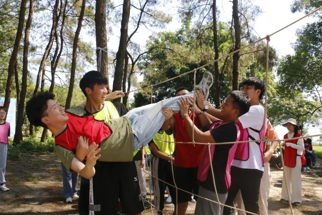 最后一項(xiàng)活動(dòng)名為“穿越電網(wǎng)”。這個(gè)經(jīng)典團(tuán)隊(duì)合作項(xiàng)目要求隊(duì)員們在限定時(shí)間內(nèi),全員穿越網(wǎng)洞達(dá)到另一端。項(xiàng)目旨在培養(yǎng)學(xué)員們領(lǐng)導(dǎo)力才能、學(xué)習(xí)沖突處理技巧、提升學(xué)員統(tǒng)一行動(dòng)及親密協(xié)作的意識,培養(yǎng)團(tuán)隊(duì)的科學(xué)決策方法和資源配置能力。