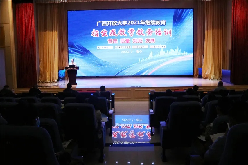 7月15號,廣西開放大學(xué)2021年繼續(xù)教育招生及教學(xué)教務(wù)培訓(xùn)會議在南寧順利召開。副校長鄧艷葵,繼續(xù)教育學(xué)院院長陶群,副院長王國榜、江祖輝、梁大海以及各學(xué)習(xí)中心的負(fù)責(zé)人參加了此次會議,會議由繼續(xù)教育學(xué)院院長陶群主持。