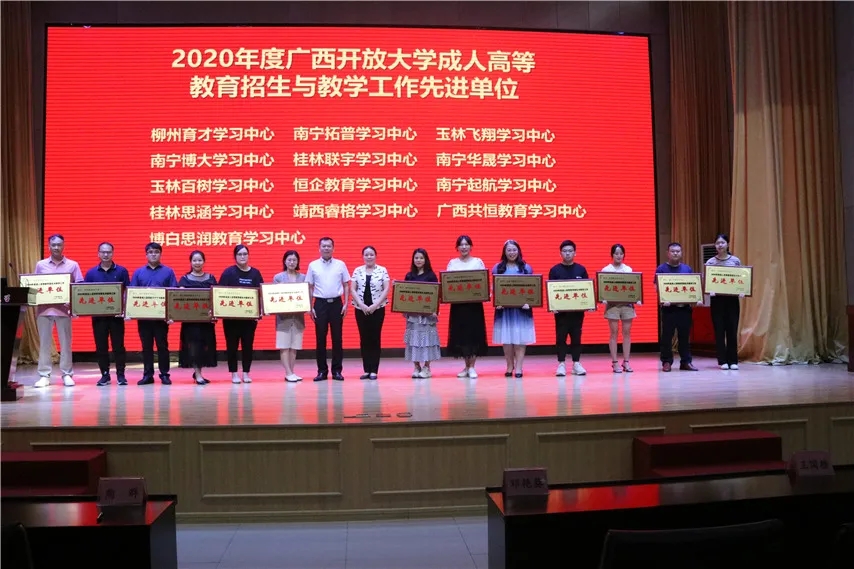 因招生工作與教學(xué)工作出色,我學(xué)習(xí)中心榮獲廣西開放大學(xué)2020年度成人高等教育招生與教學(xué)工作“先進(jìn)單位”。覃麗娟、劉怡玲等老師榮獲招生與教學(xué)工作先進(jìn)個人。