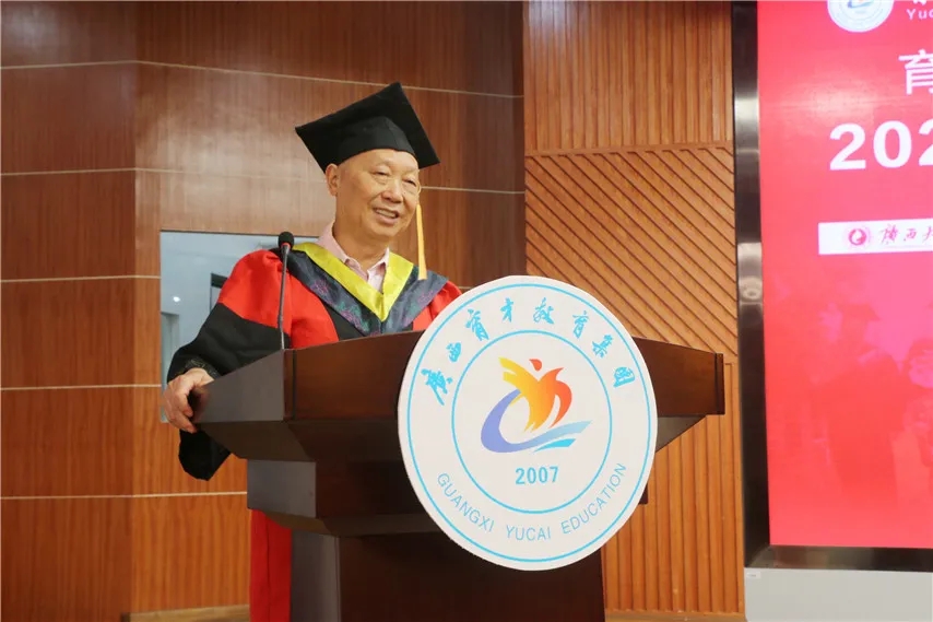 ▲曾擔(dān)任過(guò)廣西師范大學(xué)黨委副書(shū)記、桂林理工大學(xué)黨委書(shū)記、廣西大學(xué)黨委書(shū)記,博士生導(dǎo)師、享受?chē)?guó)務(wù)院特殊津貼的專家陽(yáng)國(guó)亮教授講話。他說(shuō),2021年正值中國(guó)共產(chǎn)黨建黨100周年,在黨的100年華誕之際,本屆畢業(yè)典禮,意義非凡、值得紀(jì)念。希望大家樹(shù)立終身學(xué)習(xí)的觀念,活到老,學(xué)到老。學(xué)習(xí)是一個(gè)永遠(yuǎn)的事業(yè),只有不斷的學(xué)習(xí),才能不斷的提高。