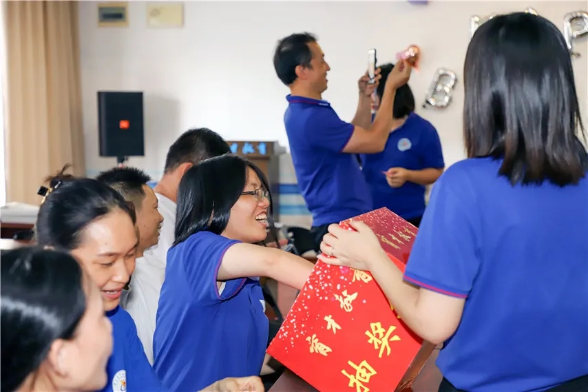 活動以集體生日會和趣味游戲的形式進(jìn)行,游戲活動包括兩個環(huán)節(jié):滿載而歸和正話反說。前者主要注重教職工的參與及團(tuán)隊協(xié)作,后者注重考驗個人的靈活性與積極性。通過游戲排名,優(yōu)先抽取精美禮物,加油,壽星們!