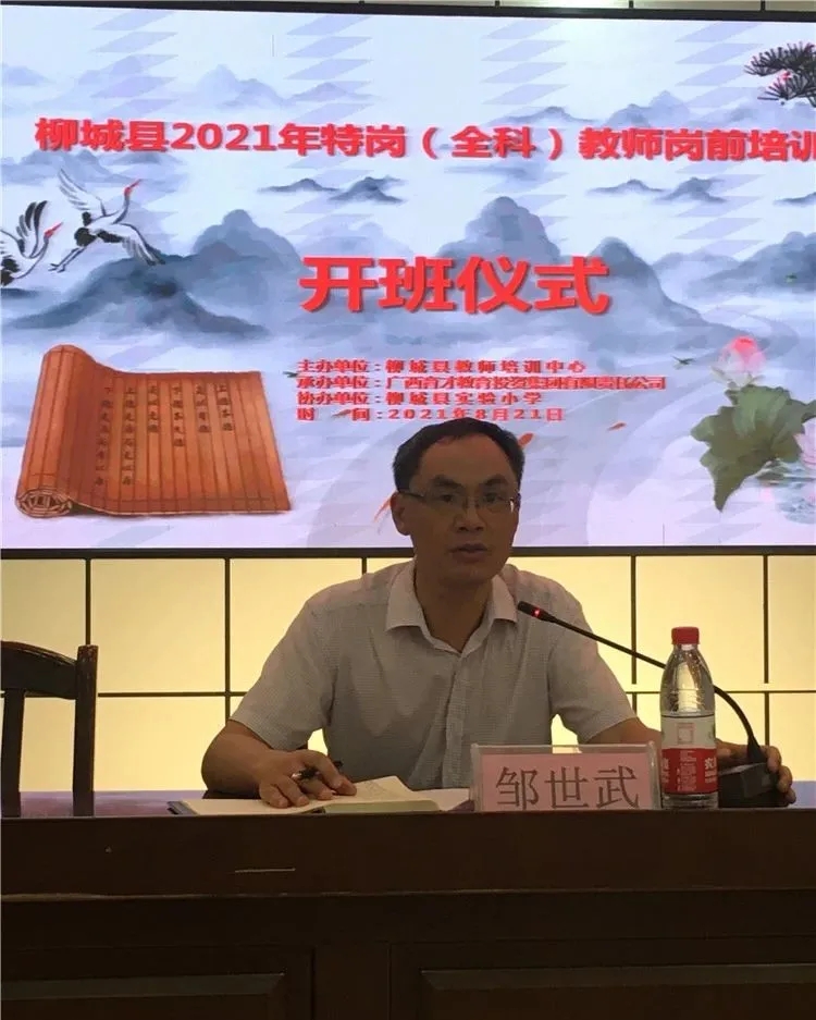 柳城縣教師培訓(xùn)中心主任鄒世武在講話中闡述了培訓(xùn)的意義及要求,希望學(xué)員通過培訓(xùn)快速提升自己,成為教師隊伍的骨干力量。
