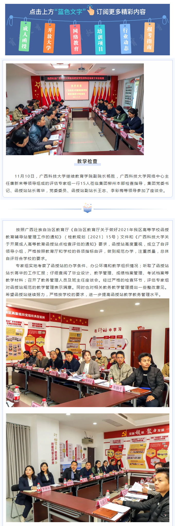 廣西科技大學(xué)繼續(xù)教育學(xué)院評估專家組蒞臨集團評估檢查