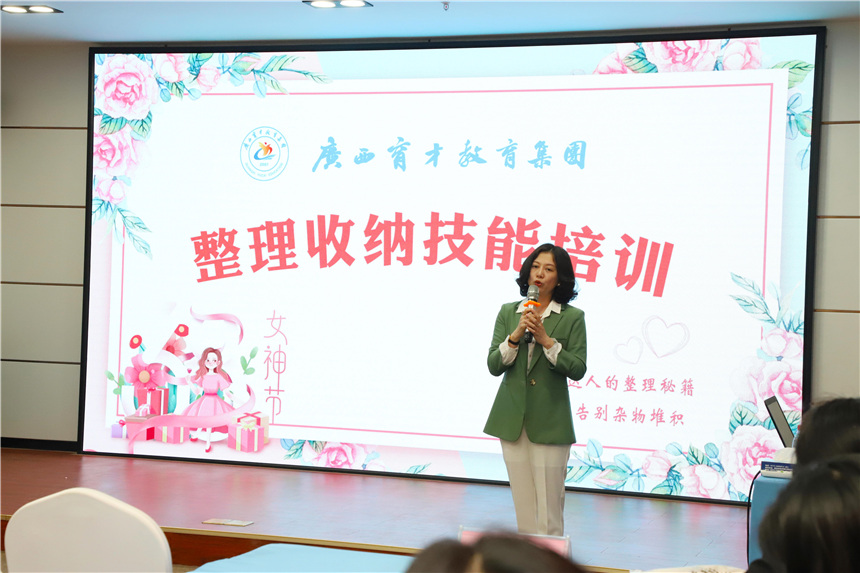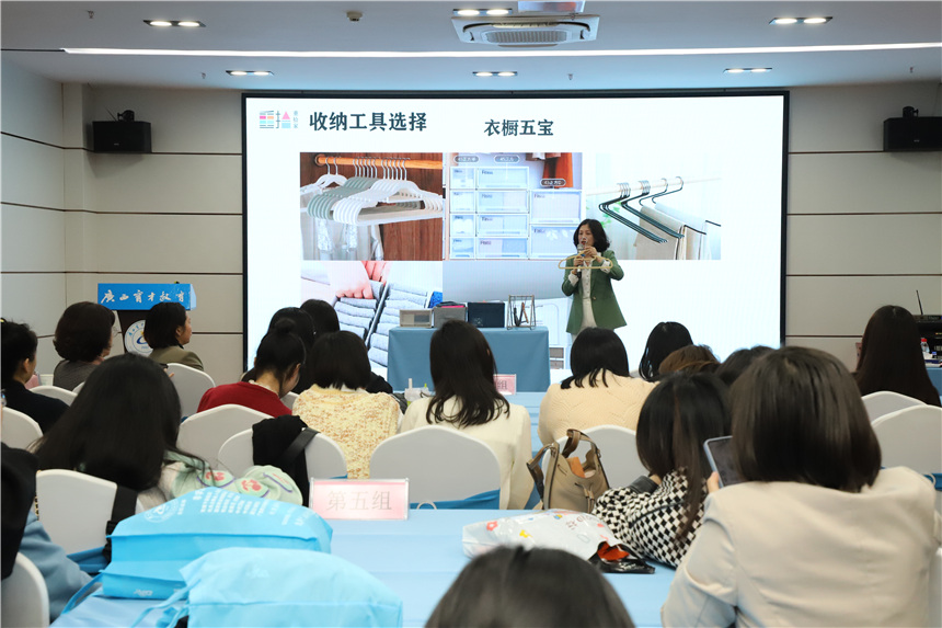 收納不僅是一種生活態(tài)度,更是一種生活智慧。為進(jìn)一步豐富集團(tuán)職工文化生活,營(yíng)造舒適的環(huán)境,提升家庭的幸福指數(shù),3月8日下午,集團(tuán)在屏山校區(qū)開展收納整理技能培訓(xùn),邀請(qǐng)整理收納師劉玲君為大家授課,集團(tuán)柳州本部的60余名女職工參加了培訓(xùn)。