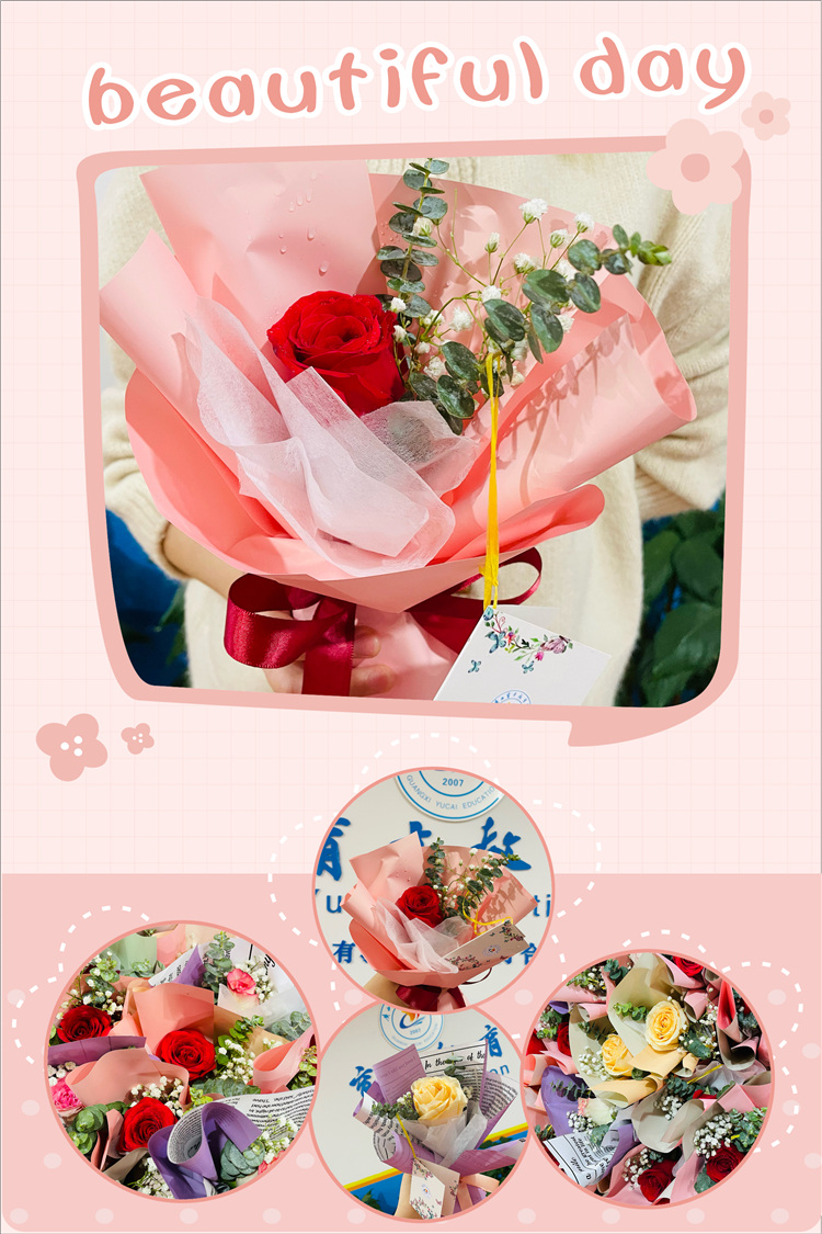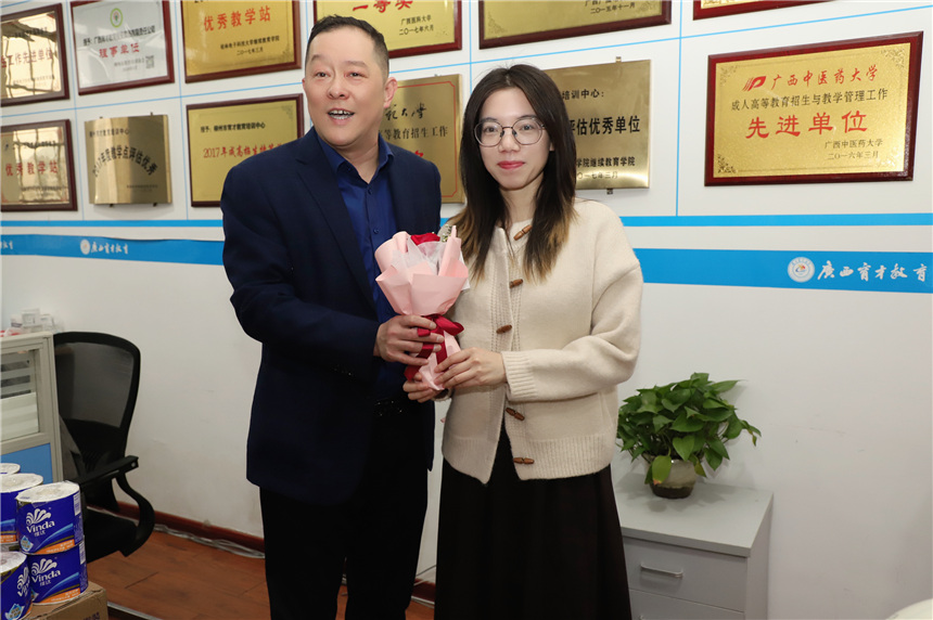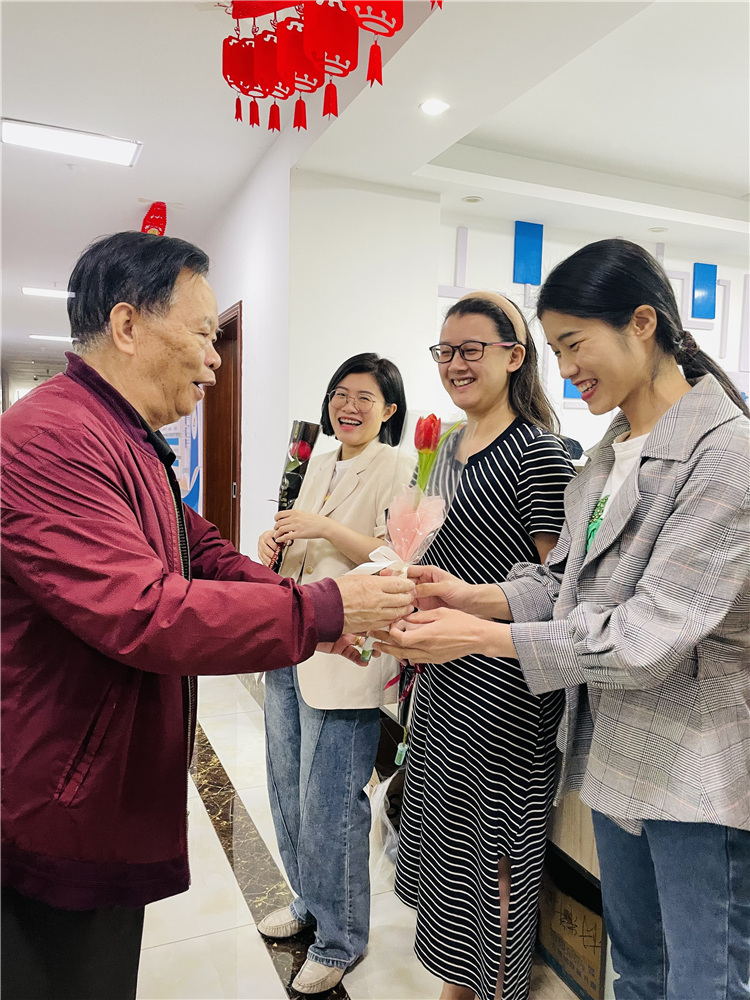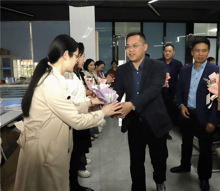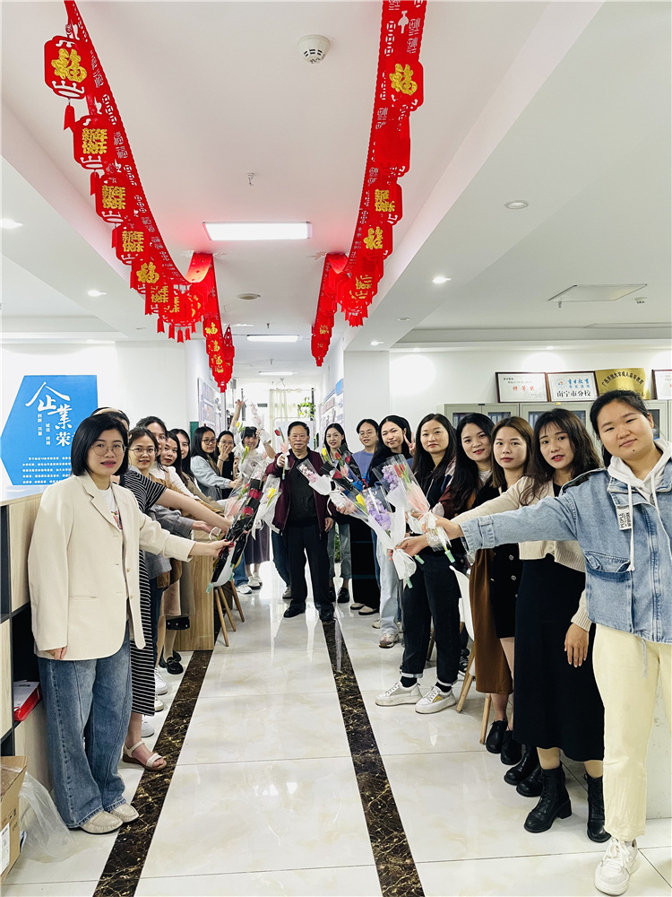 一束鮮花,一句祝福,一份美好。3月8日上午,集團(tuán)黨委書記、董事長(zhǎng)蔣華,市委組織部派駐集團(tuán)第一書記冼慶榮、集團(tuán)培訓(xùn)總監(jiān)高月亮老師等領(lǐng)導(dǎo)為在崗的女職工現(xiàn)場(chǎng)發(fā)放節(jié)日福利,向辛勤工作在集團(tuán)各個(gè)崗位的女職工送上了鮮花和節(jié)日祝福。