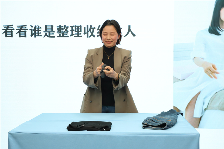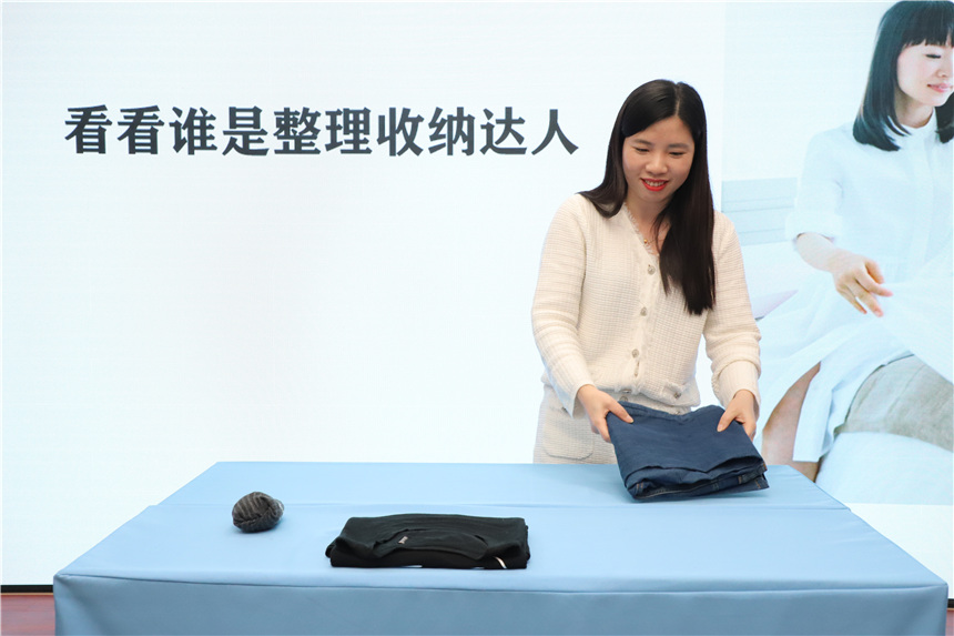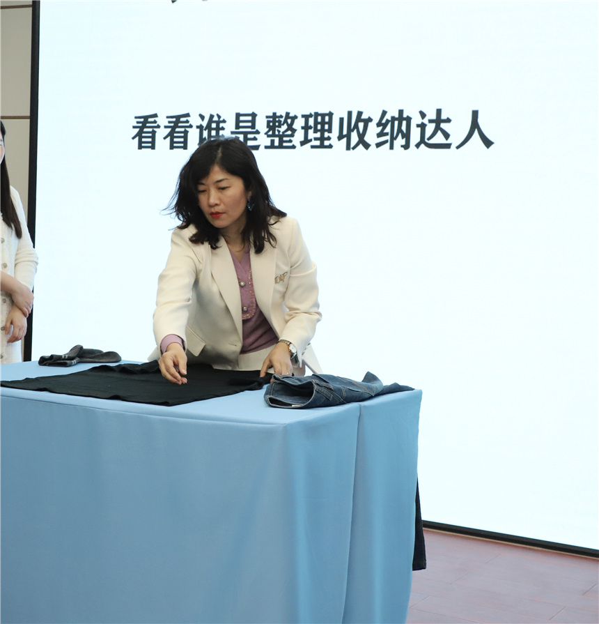 本次培訓(xùn)以“講座+實(shí)操”的形式,劉老師從“斷舍離”理念引入,為大家普及了整理收納的含義和基本原則,講解了居家整理的六個(gè)步驟:規(guī)劃、清空、分類、篩選、收納、維持。指導(dǎo)大家使用科學(xué)收納方法更合理、更高效、更舒適地規(guī)劃生活。劉老師還現(xiàn)場(chǎng)演示了T恤、褲子、襪子、內(nèi)衣褲的立式折疊方法,讓學(xué)員們受益頗多?;?dòng)實(shí)操環(huán)節(jié),大家紛紛麻利地動(dòng)起手來(lái),學(xué)以致用??吹蒋B得整整齊齊的衣襪,大家成就感十足,紛紛表示:“參加這次活動(dòng)太有收獲了,學(xué)到了非常實(shí)用的收納整理技巧,回去之后就把家整理起來(lái)?!?/span>