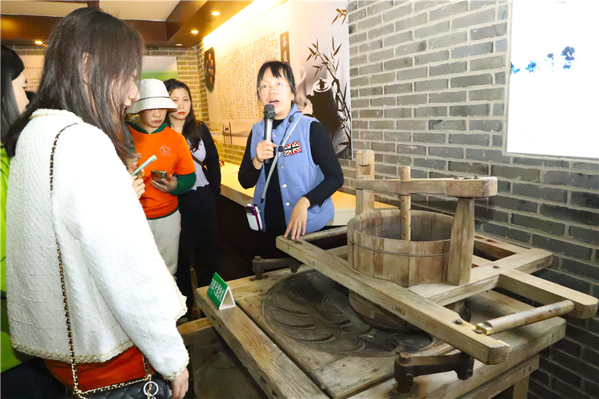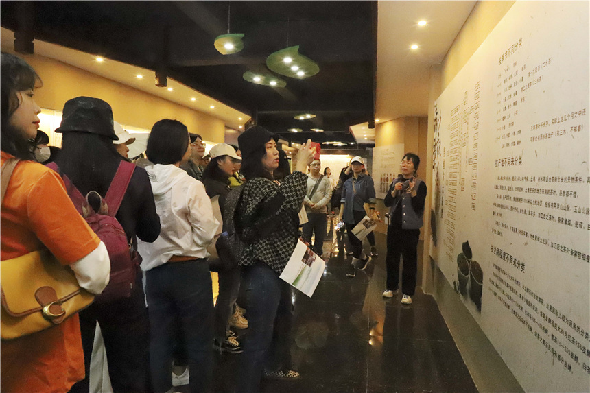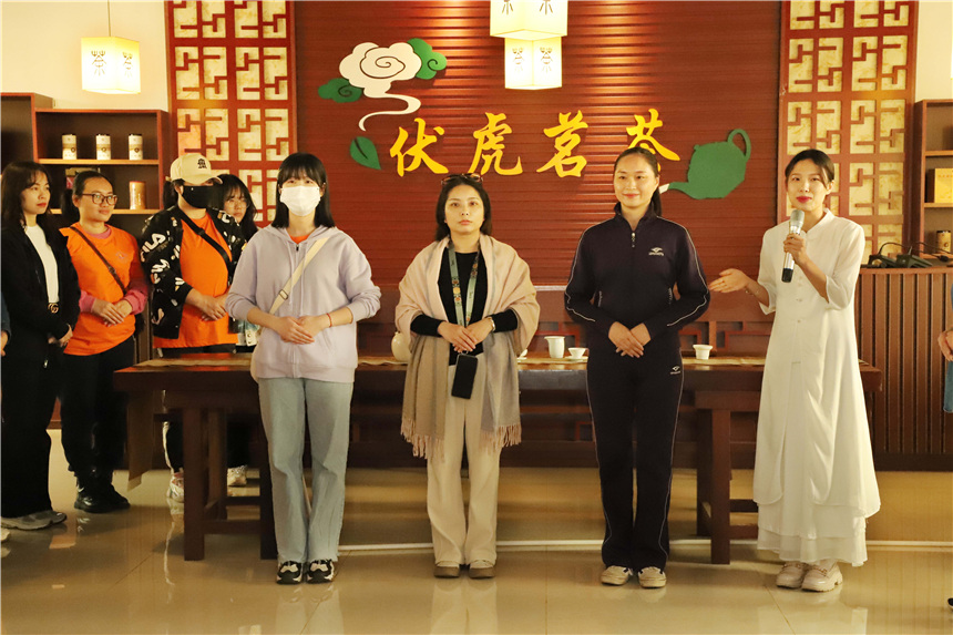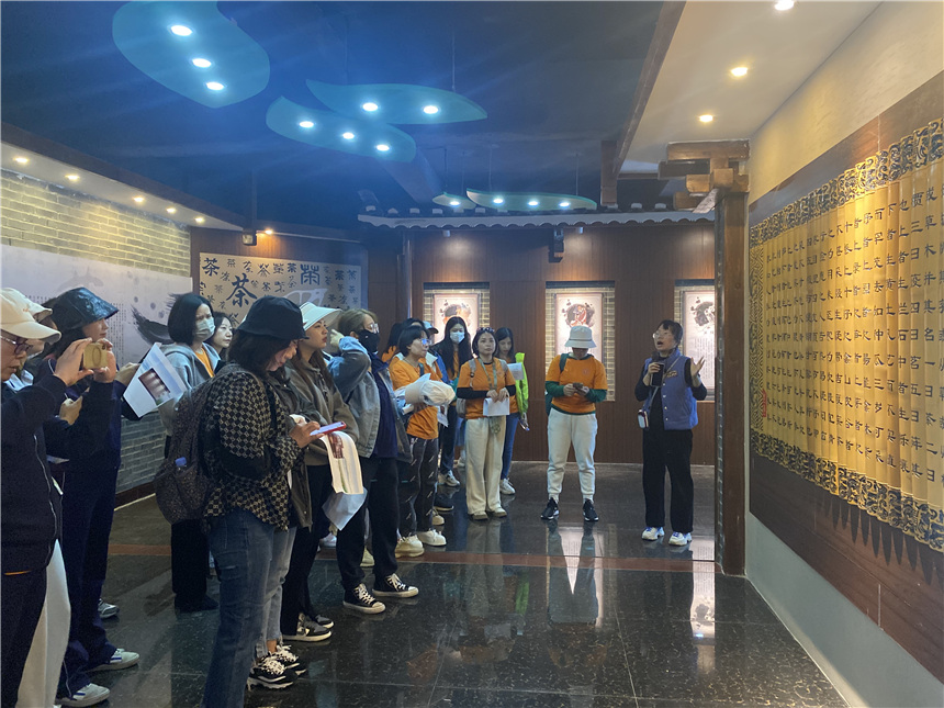 在伏虎農(nóng)場(chǎng)茶文化博物館和僑文化博物館,講解員熱情地給大家講解茶文化,從茶葉的歷史、生長(zhǎng)環(huán)境到茶葉傳統(tǒng)的制作工藝,使大家了解茶文化的起源和發(fā)展歷程、宏偉神秘的中華茶史以及農(nóng)場(chǎng)華僑文化,其間各小組需完成打卡學(xué)習(xí)任務(wù)。