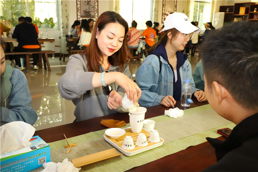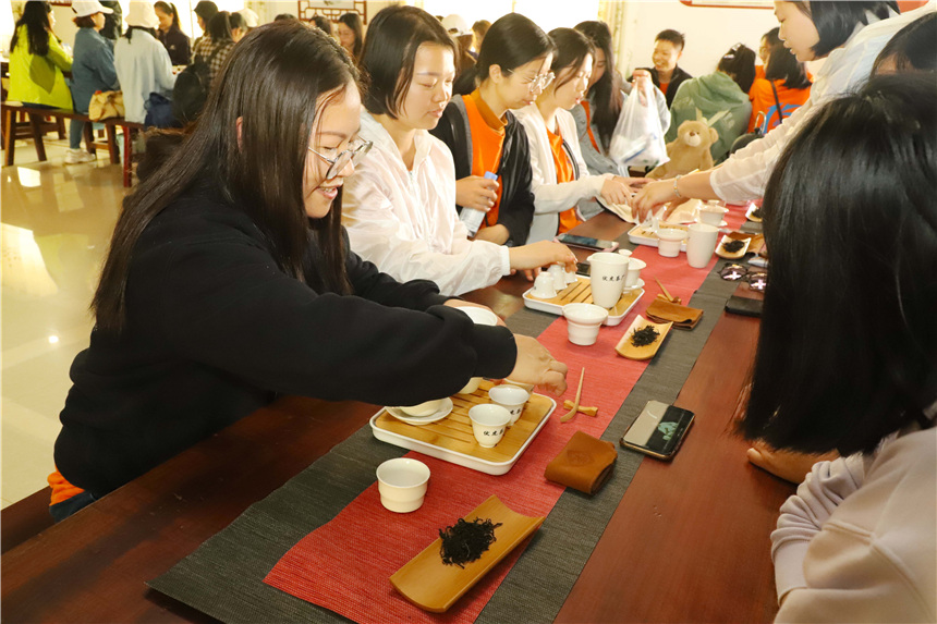 品味茶藝,品味人生。在茶藝展示中心,茶藝?yán)蠋熯M(jìn)行了茶藝表演,從洗茶、沖泡,到封壺、分杯、奉茶,每一個(gè)環(huán)節(jié)都蘊(yùn)含著中國(guó)茶文化的獨(dú)特魅力。大家也在老師的帶領(lǐng)下親自動(dòng)手體驗(yàn)茶葉沖泡技巧,品鑒茶香。