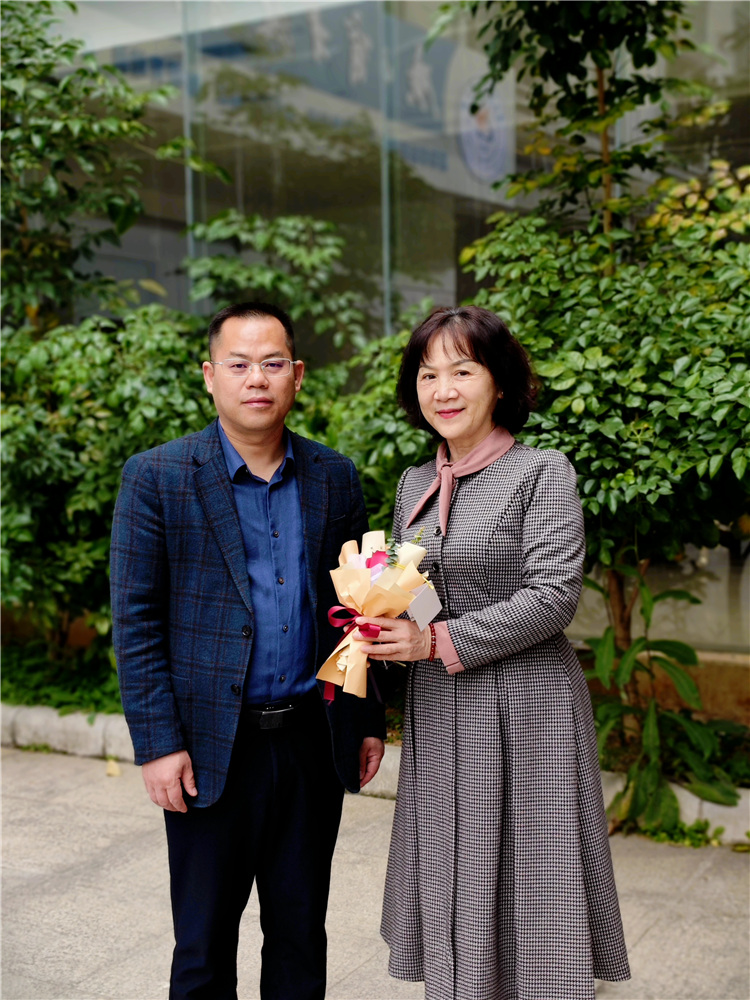 ▲集團(tuán)黨委書記、董事長(zhǎng)蔣華為集團(tuán)專家工作室李紅文老師送鮮花