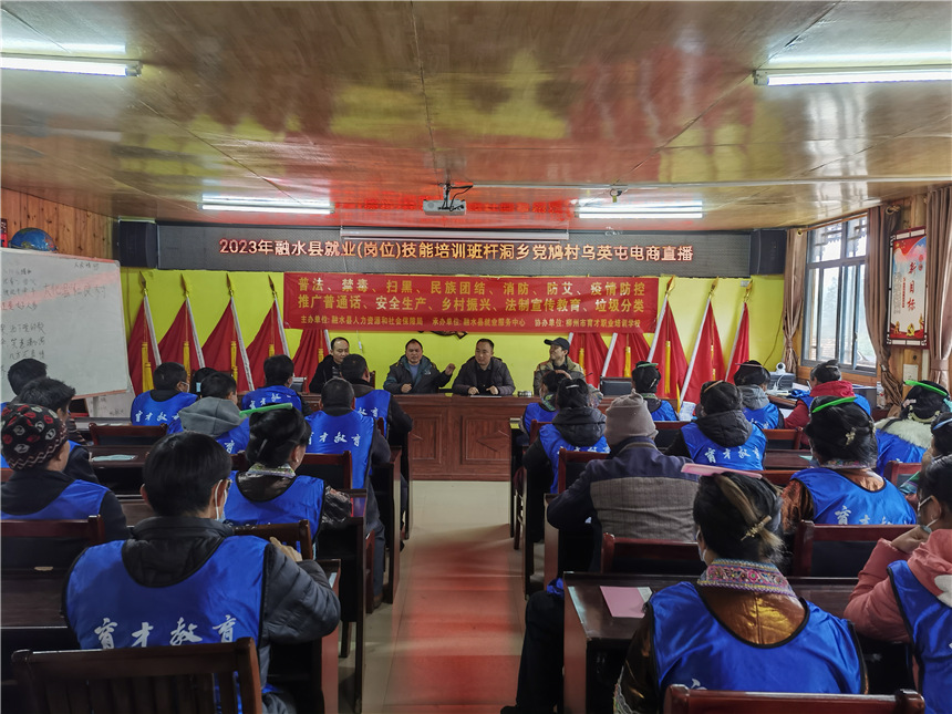 3月20日,由集團培訓學院承辦的“2023年融水縣就業(yè)(崗位)技能培訓班——桿洞鄉(xiāng)黨鳩村烏英屯電商直播”在烏英屯順利開班。桿洞鄉(xiāng)就業(yè)社保服務中心主任王衍琛,黨鳩村村支書梁成張,二級電子商務師陳勇高出席開班儀式,共有33名黨鳩村學員參加了此次培訓。本次培訓旨在服務于鄉(xiāng)村振興,為農民穩(wěn)步增收助力,拓寬農民就業(yè)增收渠道。