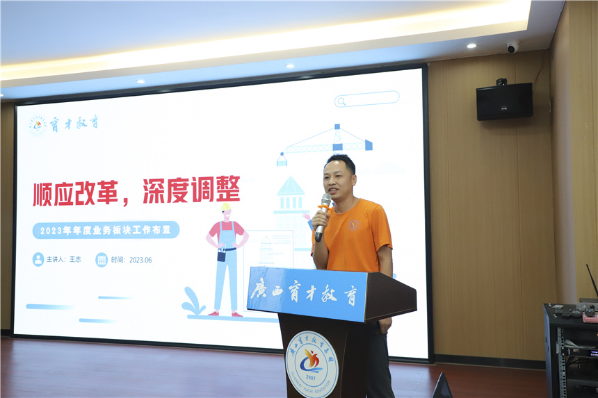 集團(tuán)黨委副書記、副校長王志作2023年下半年業(yè)務(wù)板塊工作布置,他對2022年的業(yè)務(wù)工作進(jìn)行了回顧,并對2023年的市場現(xiàn)狀進(jìn)行了分析,動員全體職工認(rèn)清形勢、求新求變、保持熱情、奮發(fā)前行,圓滿完成集團(tuán)下達(dá)給各運營部的目標(biāo)任務(wù),開創(chuàng)營銷發(fā)展新局面。