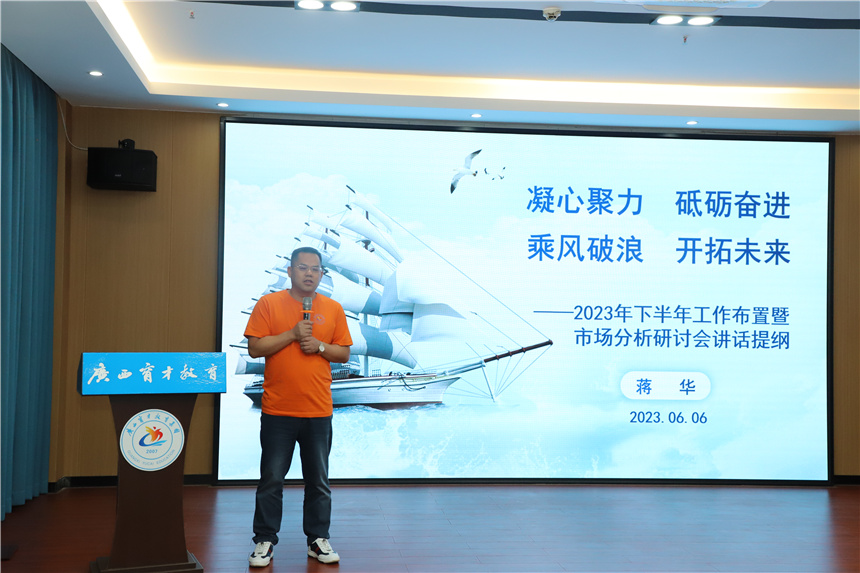 6月6日,集團(tuán)召開2023年下半年工作布置暨市場分析研討會,全面總結(jié)并肯定集團(tuán)上半年取得的成績,分析當(dāng)前形勢和任務(wù),研究部署下半年工作。集團(tuán)黨委書記、董事長蔣華,市委組織部派駐集團(tuán)第一書記冼慶榮,總校校長梁國坤,黨委副書記、副校長王志,黨委委員、副校長李彩梅、蔣亮,黨委委員王麗,黨委委員、培訓(xùn)學(xué)院院長趙彬,集團(tuán)專家工作室專家李紅文老師,高月亮老師,馮水生老師以及全體職工參加了會議。