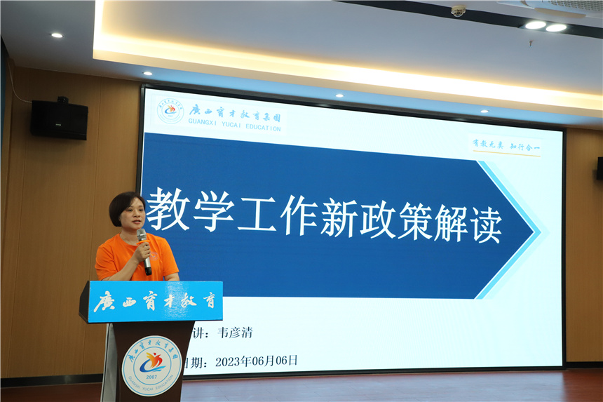 ▲教學(xué)教務(wù)部部長韋彥清作教學(xué)工作新政策解讀