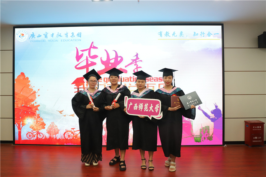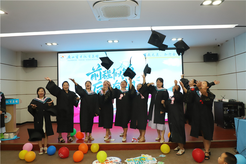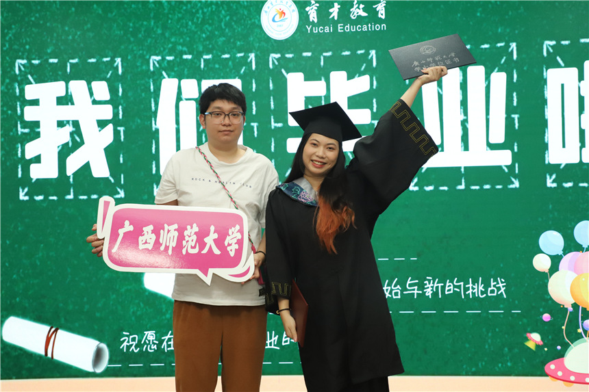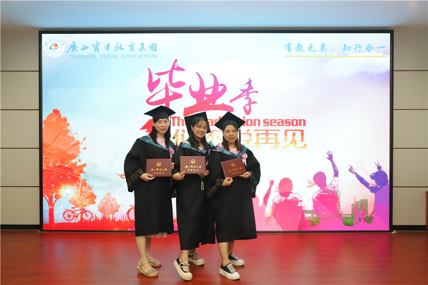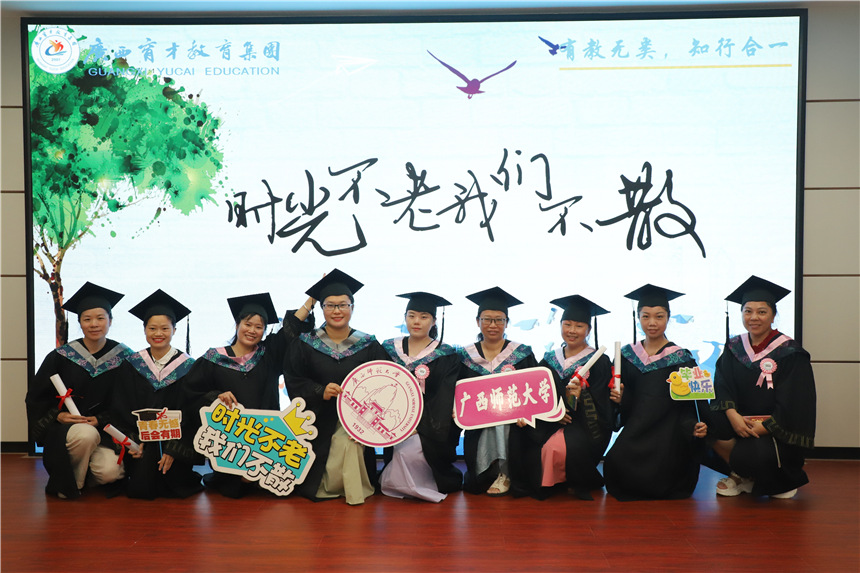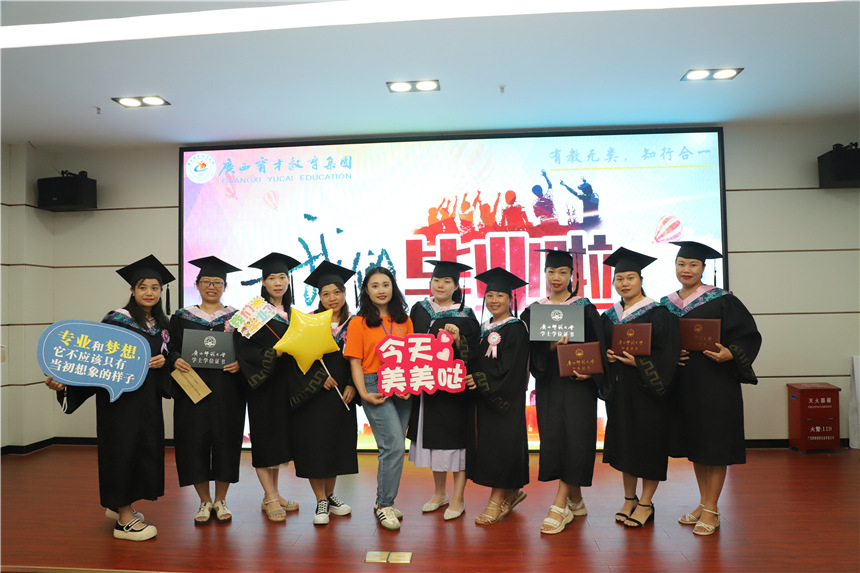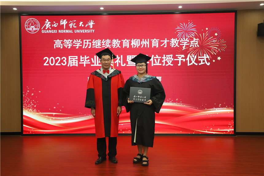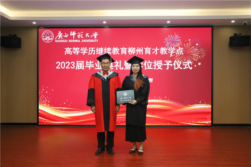 7月9日上午,廣西師范大學(xué)高等學(xué)歷繼續(xù)教育柳州育才教學(xué)點2023屆畢業(yè)典禮暨學(xué)位授予儀式在集團(tuán)屏山校區(qū)隆重舉行,廣西師范大學(xué)繼續(xù)教育學(xué)院副院長何創(chuàng)雄、院長助理蘇華,集團(tuán)黨委書記、董事長、教學(xué)點負(fù)責(zé)人蔣華、副校長李彩梅以及140余名畢業(yè)生代表參加了典禮。
