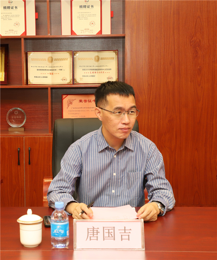 ▲廣西民族大學(xué)招生就業(yè)處處長(zhǎng)唐艷軍座談交流