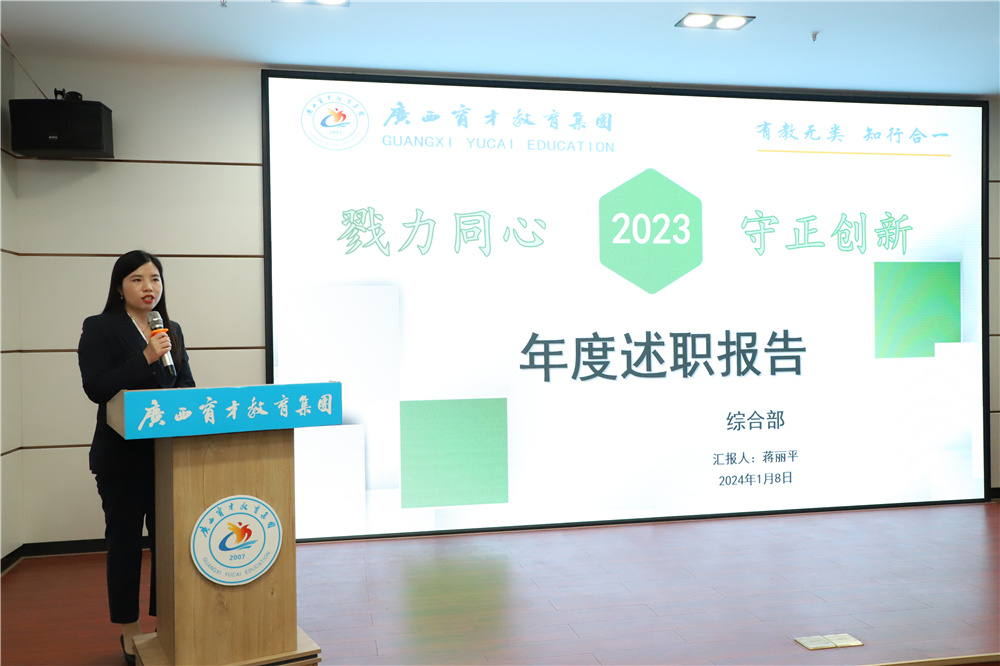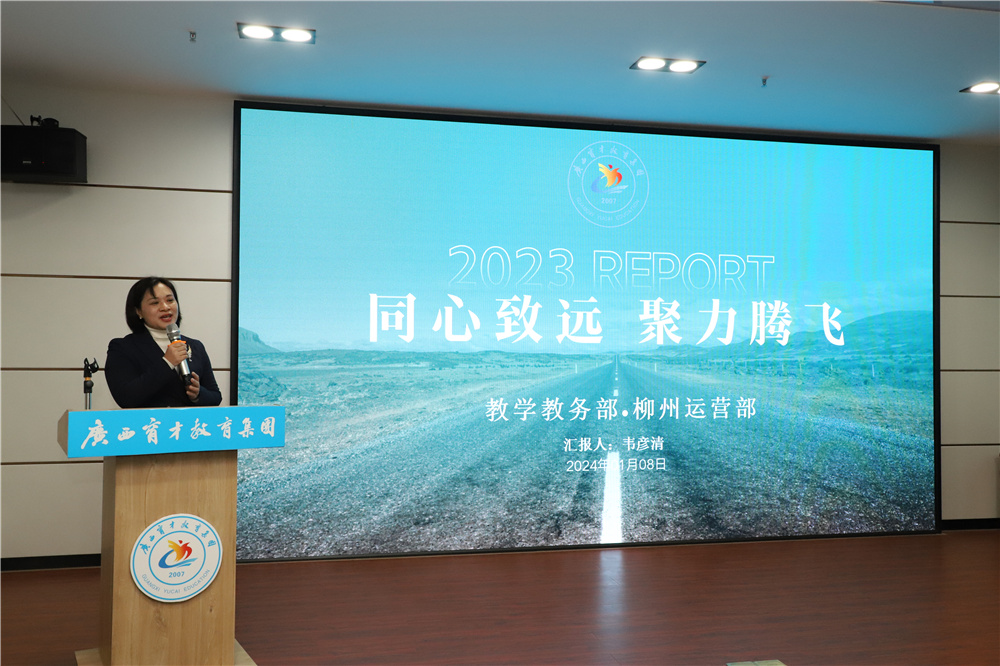 ▲教學(xué)教務(wù)部部長(zhǎng)韋彥清作2023年度教學(xué)教務(wù)部、柳州運(yùn)營(yíng)部工作述職