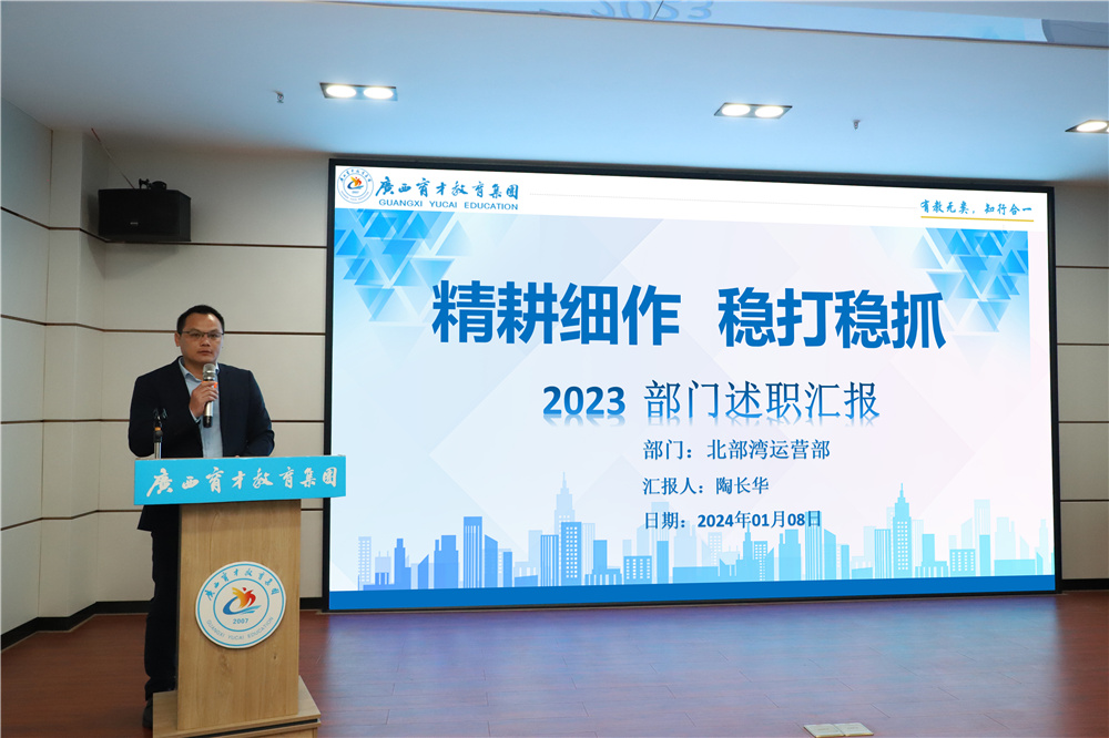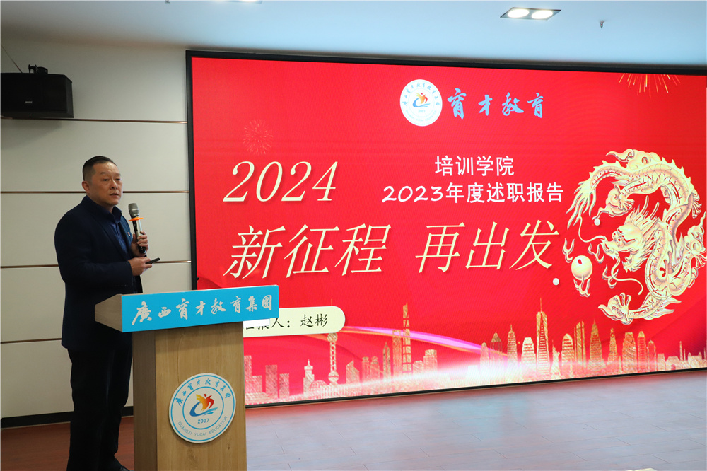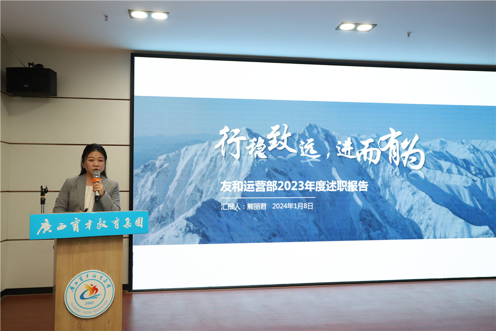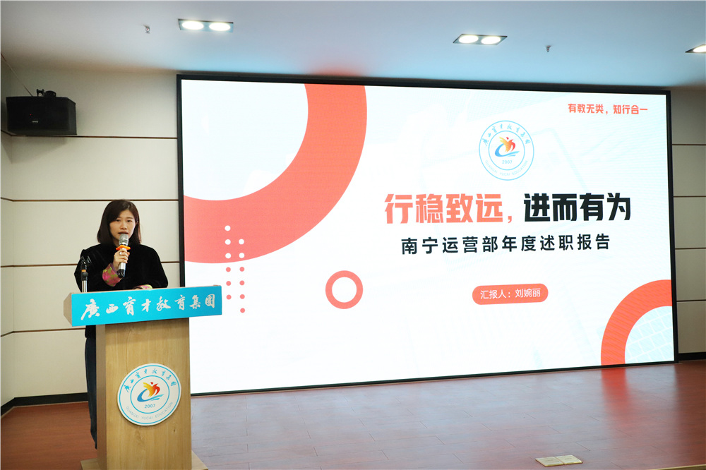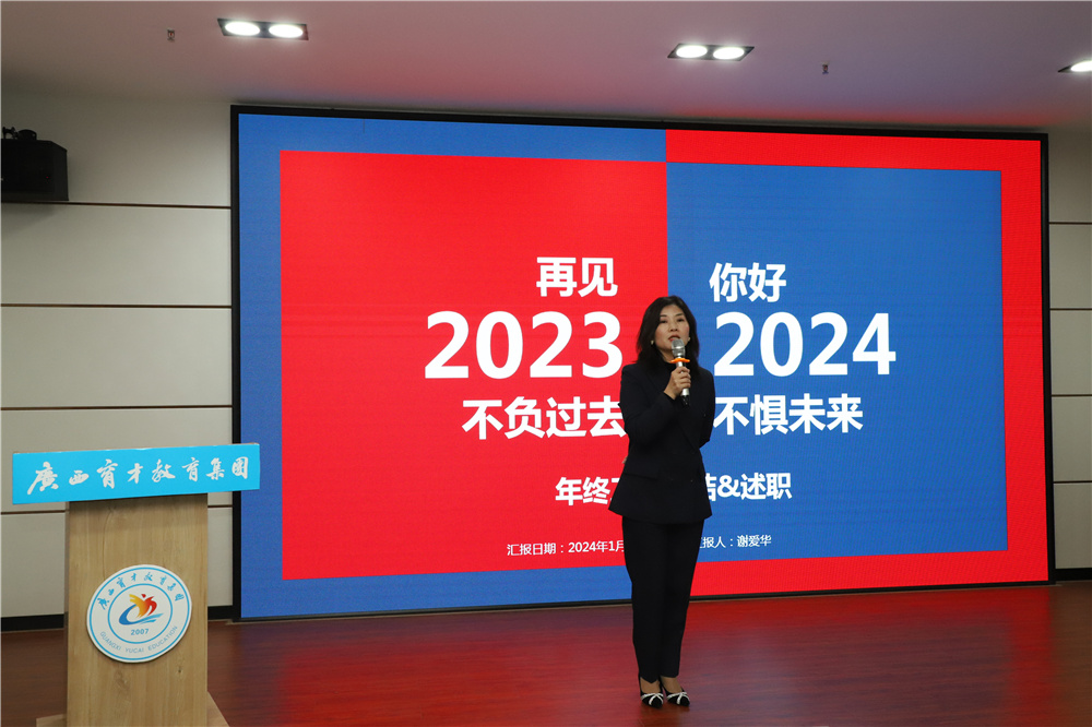 賦能增效,向新而行。為了更好地回顧2023年所取得的成績(jī)以及部署2024年重點(diǎn)工作計(jì)劃,進(jìn)一步統(tǒng)一思想,凝聚力量,1月8日,集團(tuán)在柳州屏山校區(qū)召開(kāi)2023年終述職大會(huì),柳州市委組織部派駐集團(tuán)黨委第一書(shū)記冼慶榮,集團(tuán)黨委書(shū)記、董事長(zhǎng)蔣華,黨委副書(shū)記、副校長(zhǎng)王志,黨委委員、副校長(zhǎng)李彩梅、蔣亮、王麗,專家工作室首席專家李紅文老師,專家工作室培訓(xùn)總監(jiān)高月亮老師以及各部門(mén)部長(zhǎng)、副部長(zhǎng)共40余人參加了會(huì)議。
