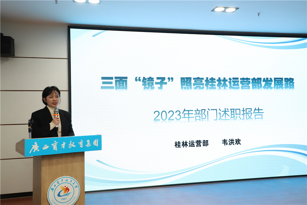 ▲桂林運(yùn)營(yíng)部副部長(zhǎng)韋洪歡作2023年度部門(mén)工作述職