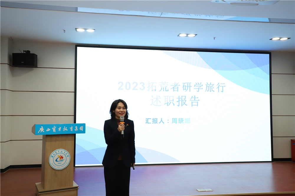 ▲研學(xué)旅行項(xiàng)目部技術(shù)指導(dǎo)總監(jiān)周曉娜作2023年度部門(mén)工作述職