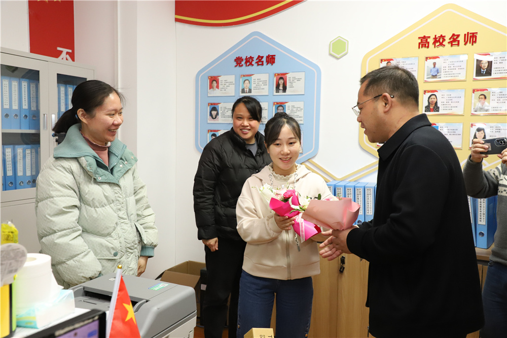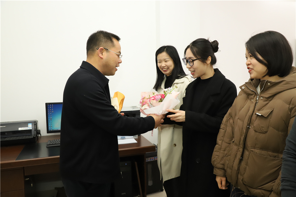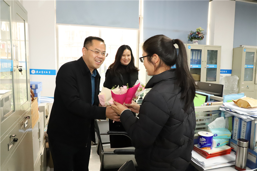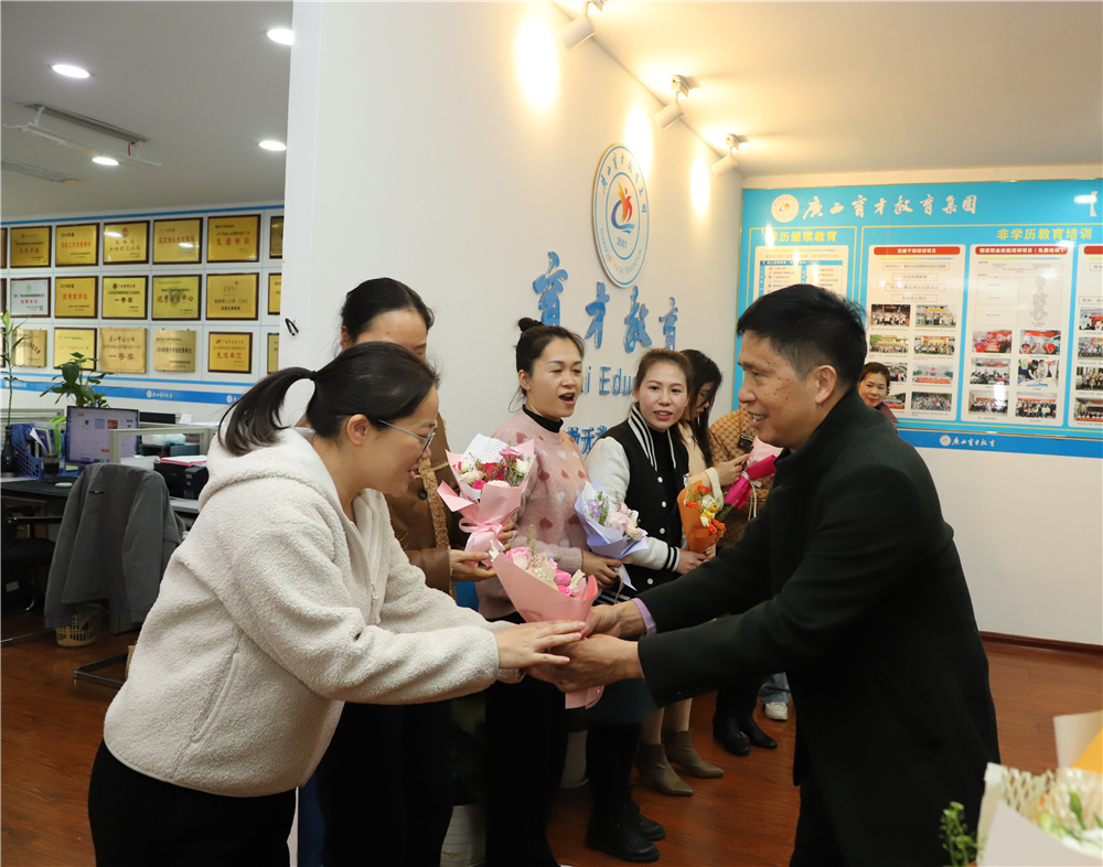 一束鮮花,一句祝福,一份美好。3月8日上午,柳州市委組織部派駐集團(tuán)第一書(shū)記冼慶榮,集團(tuán)黨委書(shū)記、董事長(zhǎng)蔣華,集團(tuán)培訓(xùn)總監(jiān)高月亮等領(lǐng)導(dǎo)為在崗的女職工現(xiàn)場(chǎng)發(fā)放節(jié)日福利,向辛勤工作在集團(tuán)各個(gè)崗位的女職工贈(zèng)送了鮮花和節(jié)日祝福。