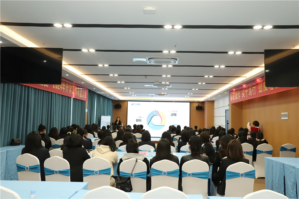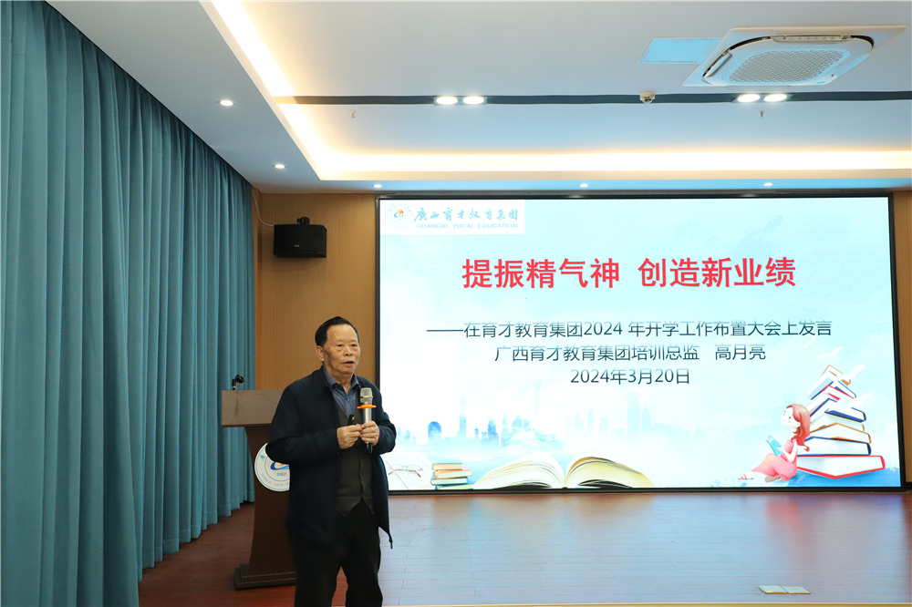集團(tuán)專家工作室培訓(xùn)總監(jiān)高月亮以《提振精氣神 創(chuàng)造新業(yè)績(jī)》為題,為全體員工解讀兩會(huì)熱詞:新質(zhì)生產(chǎn)力、高質(zhì)量發(fā)展;分析了當(dāng)前教育的熱點(diǎn)問(wèn)題,勉勵(lì)所有育才人順勢(shì)而為,待勢(shì)而發(fā),百思存異,守道而生。