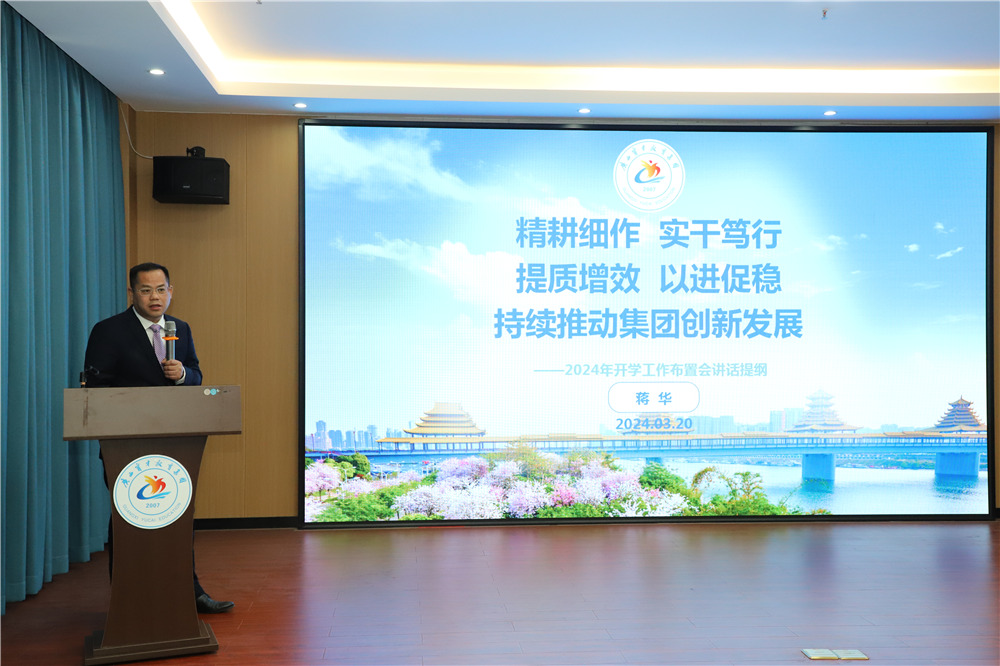 更好地統(tǒng)籌和部署2024年集團(tuán)工作,精心謀劃開(kāi)局新篇,為新一年的工作定調(diào)、定向、定力,3月20日,集團(tuán)在柳州召開(kāi)2024年開(kāi)學(xué)工作布置大會(huì),集團(tuán)黨委書(shū)記、董事長(zhǎng)蔣華,柳州市委組織部派駐集團(tuán)黨委第一書(shū)記冼慶榮等黨政領(lǐng)導(dǎo)班子及全體教職工170余人參加了大會(huì)。
