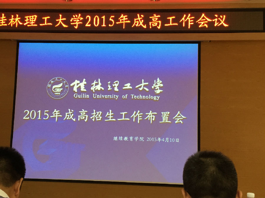 4月26日桂林理工大學(xué)成人高等教育2015年招生工作會議在桂林理工大學(xué)成人教育學(xué)院三樓會議室召開,學(xué)院領(lǐng)導(dǎo)、各教學(xué)點(diǎn)主要負(fù)責(zé)同志、招生工作人員參加了會議。桂林理工大學(xué)副校長陳學(xué)軍教授出席了會議,會議由成教院曹文獻(xiàn)院長主持,我中心王志校長、蔣亮副校長出席會議。