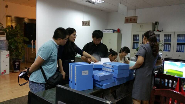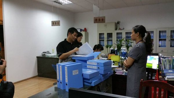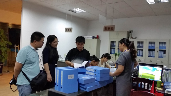 育才教務(wù)處韋主任把教學管理材料交給檢查組查閱