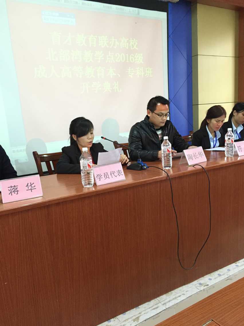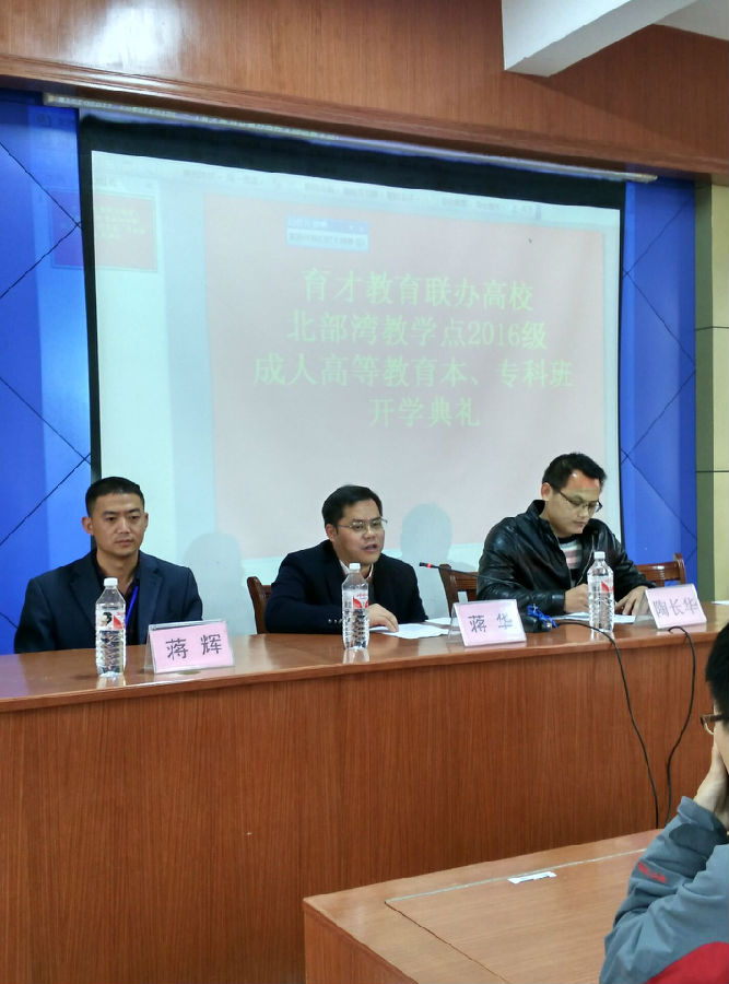 1月16日上午,育才教育北部灣分校2016級成人高等教育新生開學典禮在育才北部灣分校隆重舉行。廣西育才教育集團董事長蔣華老師出席了開學典禮并作了重要講話。來自欽州及各縣200多名成人函授本、??菩律鷧⒓恿碎_學典禮。