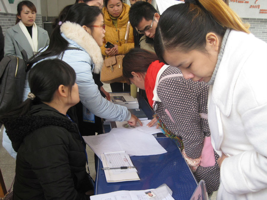 開(kāi)學(xué)典禮后,同學(xué)進(jìn)行報(bào)到注冊(cè)