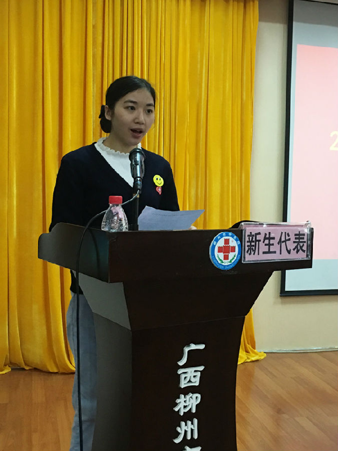 新生代表護(hù)理學(xué)專業(yè)吳蘭婷同學(xué)提醒新生們要盡快轉(zhuǎn)變角色,處理好工學(xué)矛盾。暢談了對大學(xué)的憧憬與夢想,并代表全體新生表達(dá)了對中醫(yī)大老師們的感謝。