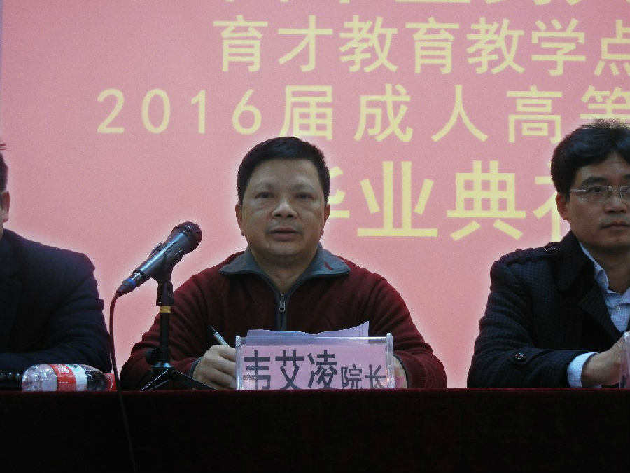 韋艾凌院長(zhǎng)首先代表學(xué)校對(duì)順利完成學(xué)業(yè)的全體畢業(yè)生表示熱烈祝賀,贊揚(yáng)了成教學(xué)生克服種種困難,較好地處理了工學(xué)矛盾,做到了學(xué)習(xí)工作兩不誤,順利完成學(xué)業(yè)的拼搏精神。其次簡(jiǎn)要地向各位同學(xué)介紹了近年來(lái)學(xué)院的發(fā)展成就,最后,韋院長(zhǎng)寄語(yǔ)畢業(yè)生:“今天同學(xué)們告別校園,完成了自己人生中的一個(gè)重要提升,即將邁進(jìn)更美好的明天去創(chuàng)造更輝煌的未來(lái)。請(qǐng)同學(xué)們經(jīng)常與學(xué)校保持聯(lián)系,當(dāng)你們事業(yè)有成的時(shí)候,不要忘了向母校報(bào)喜,母校會(huì)為你們而驕傲;當(dāng)你們遇到困難和挫折時(shí),不要忘了你們的后面有永遠(yuǎn)都在關(guān)注你們的母校,母校永遠(yuǎn)是你的靠山、母校會(huì)給予你們最大的幫助和支持?!?/span>