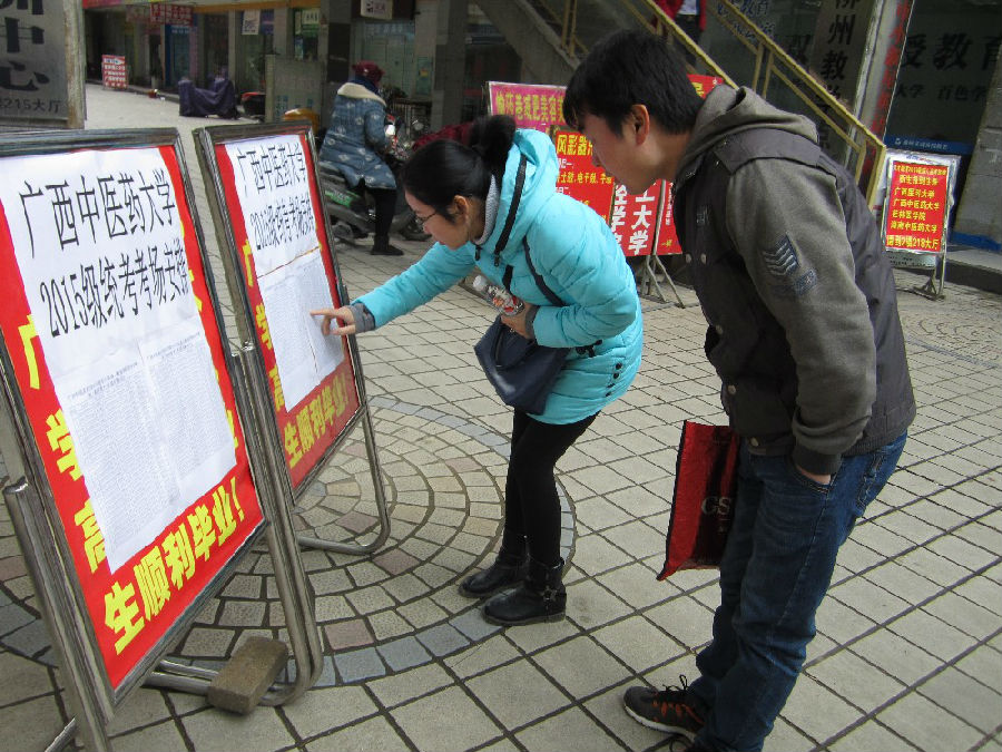 參加考試的同學(xué)在查看考場