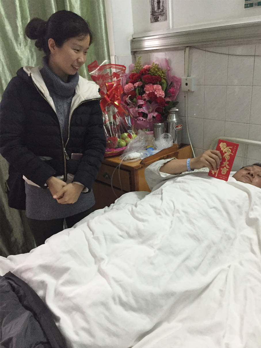 近日,廣西育才教育集團工會來到廣西科技大學第二附屬醫(yī)院看望了生病住院的職工蔣水榮同志,把鮮花和慰問金送到職工手中,同時也送去關(guān)懷和溫暖,鼓勵蔣水榮同志樹立信心,勇敢戰(zhàn)勝病魔,爭取早日康復。廣西育才教育工會成立以來,堅持以人為本,為職工排憂解難,解除職工的后顧之憂,使每位職工都能真切體會到公司的關(guān)愛。