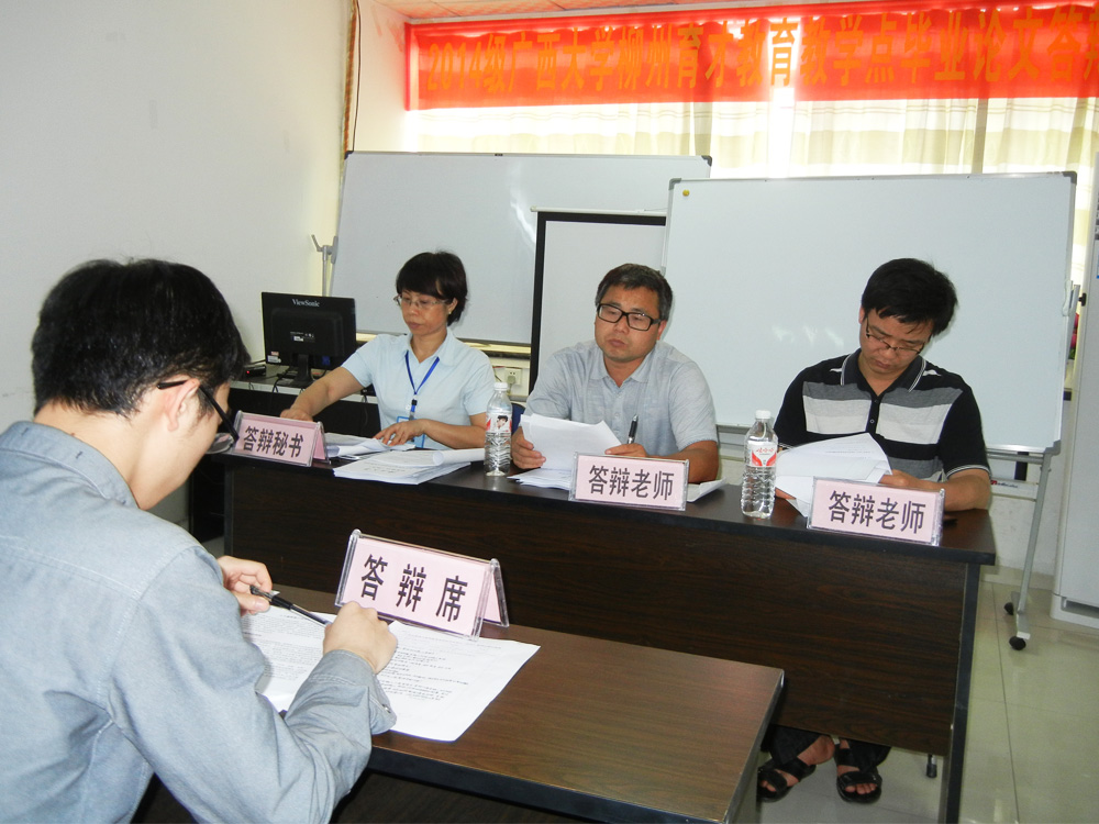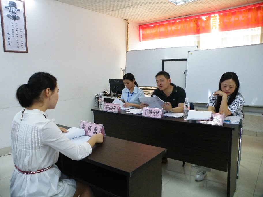 為檢驗(yàn)畢業(yè)生學(xué)術(shù)研究能力與專業(yè)學(xué)習(xí)效果,經(jīng)過緊鑼密鼓的籌備工作,4月16日、17日,廣西大學(xué)育才教育教學(xué)點(diǎn)在育才總部水晶印象大廈舉行了2014級(jí)本科畢業(yè)論文答辯。本次有320人參加論文答辯,分成6個(gè)小組,每個(gè)答辯小組由2名答辯老師和1名答辯秘書組成。